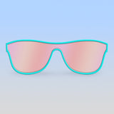 These Weird Science teal single shield toddler sunglasses radiate an effortlessly cool and nostalgic vibe right out of the 80s. Named after the coolest hang out of the Bayside High crew—The Max—Roshambo's newest style of sunglasses melds super-neon, fun-spirited frame colors and mirrored polarized lenses for the coolest combos!