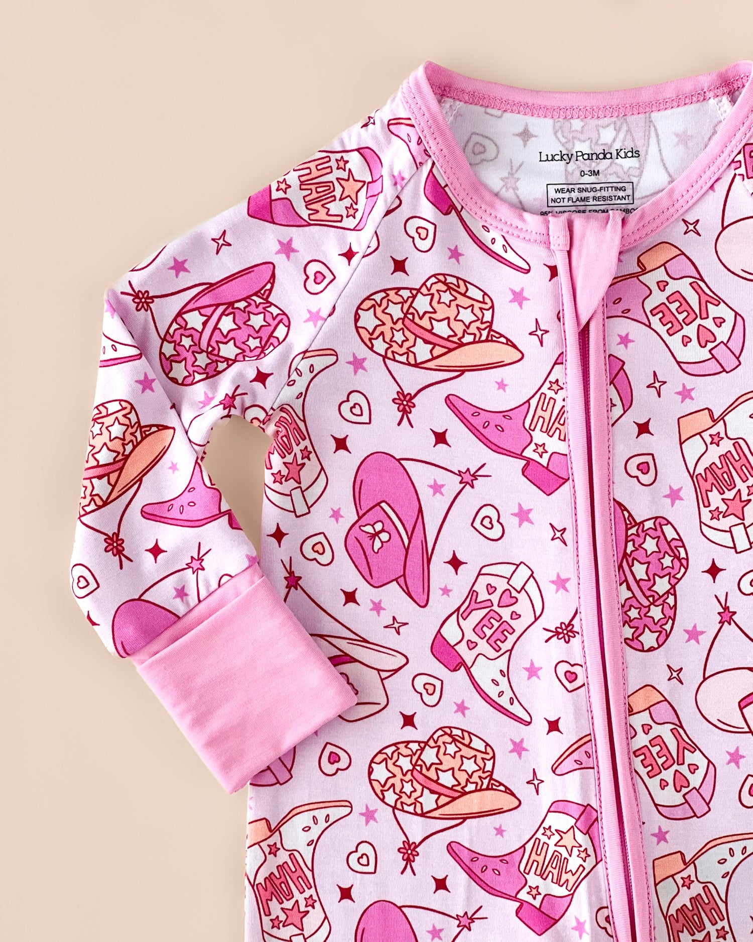 Yeehaw! Your little one will love our Bamboo Zip Romper | Cowgirl!
