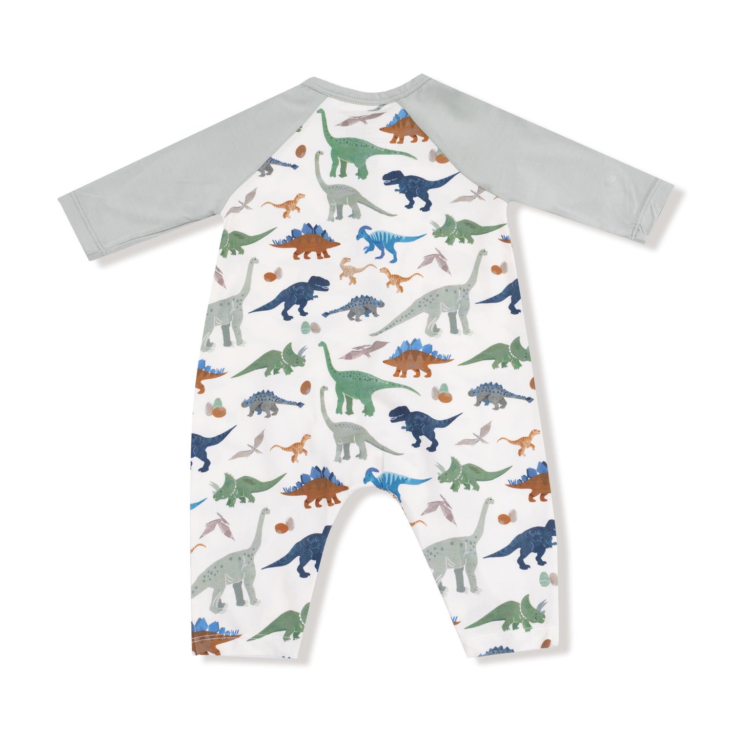 Long Sleeve Raglan Henley Romper - Washy Dinos