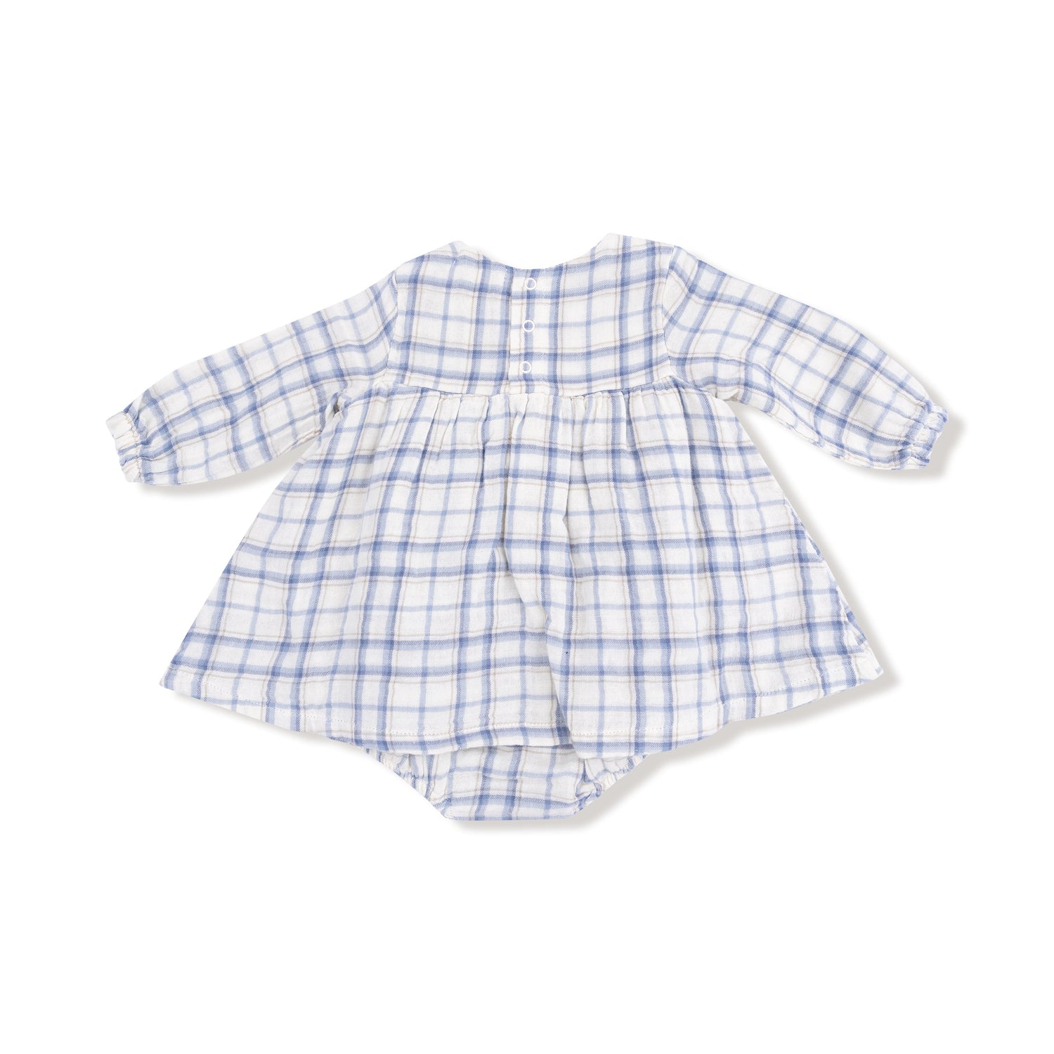 Long Sleeve Smocked Ruffle Bubble with Skirt - Blue Plaid