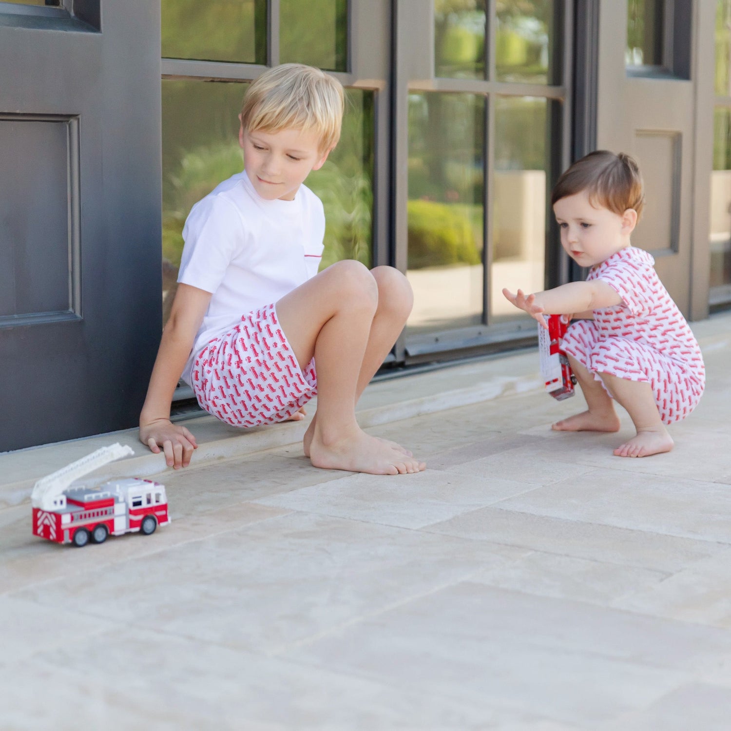 Hudson Boys' Short Set - Fire Truck Red - HoneyBug