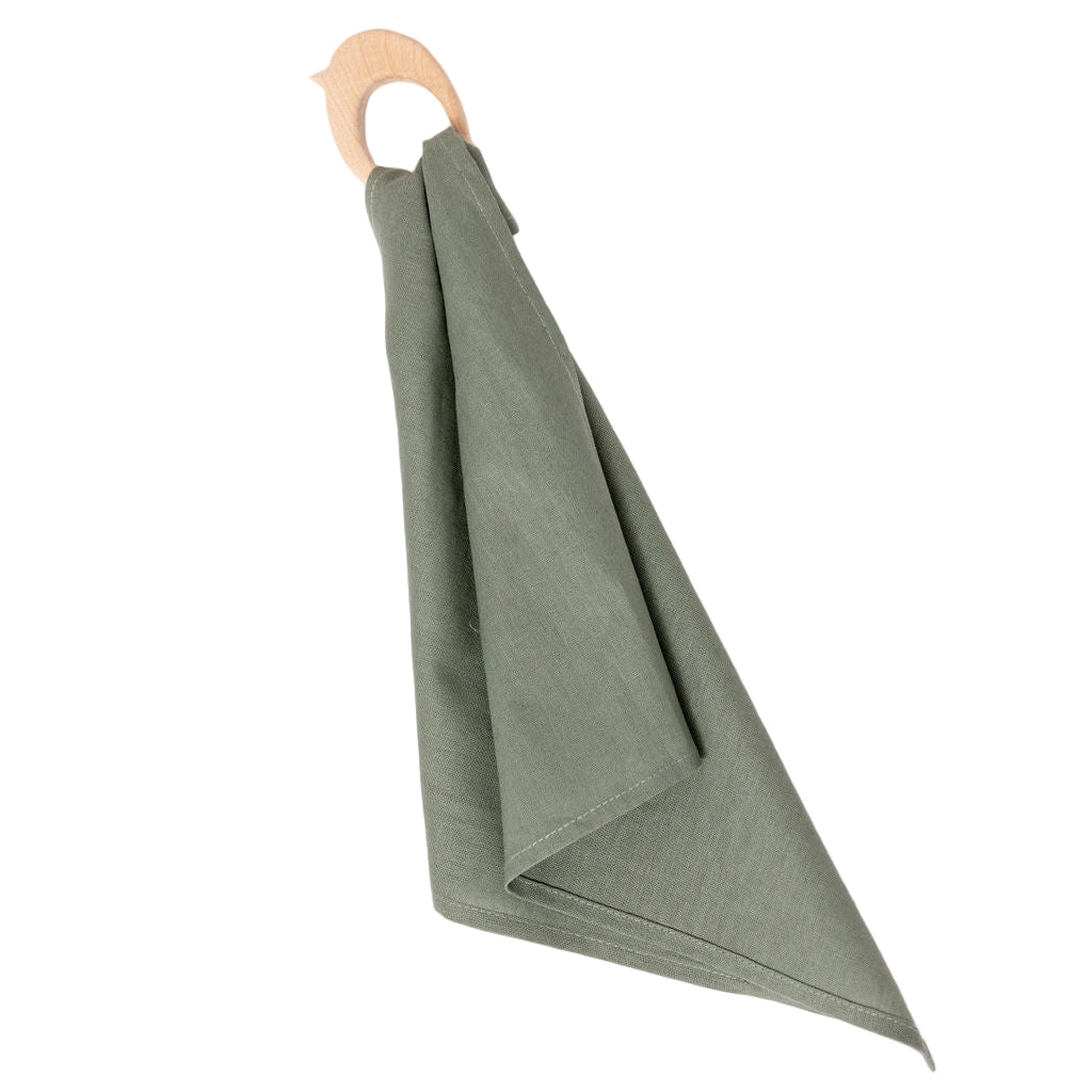 We love the simplicity of our Teether design: an elegantly carved maplewood bird, smooth and safe for your babe to chew on, and a length of soft linen to hold for comfort that snaps on and off for easy washing.