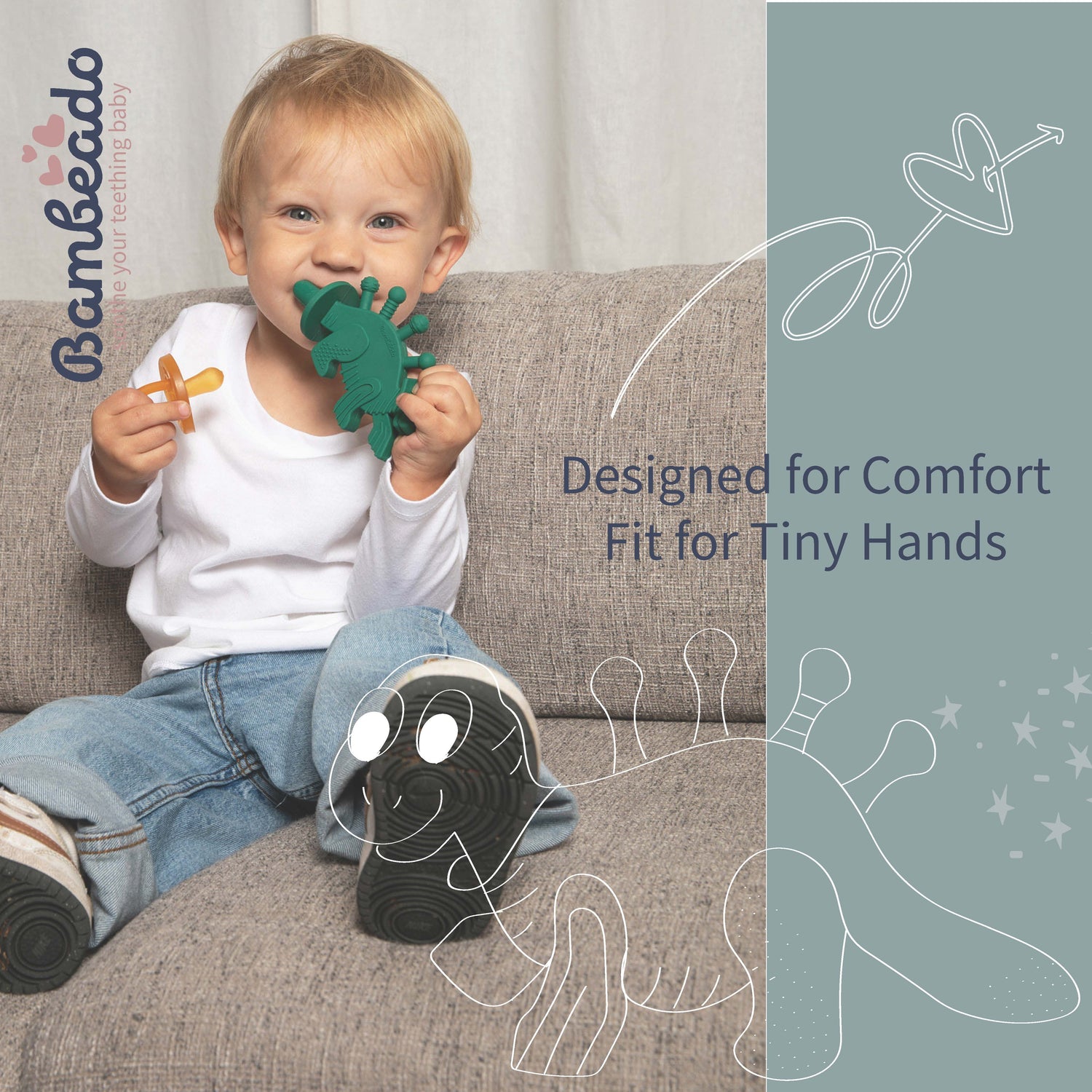 AWESOME BABY GIFT - More than just a teether, it's a playful dental tool! Packaged elegantly, Little Bamber Dino-Brush teething toys make the perfect baby shower gift, guaranteed to impress new parents.