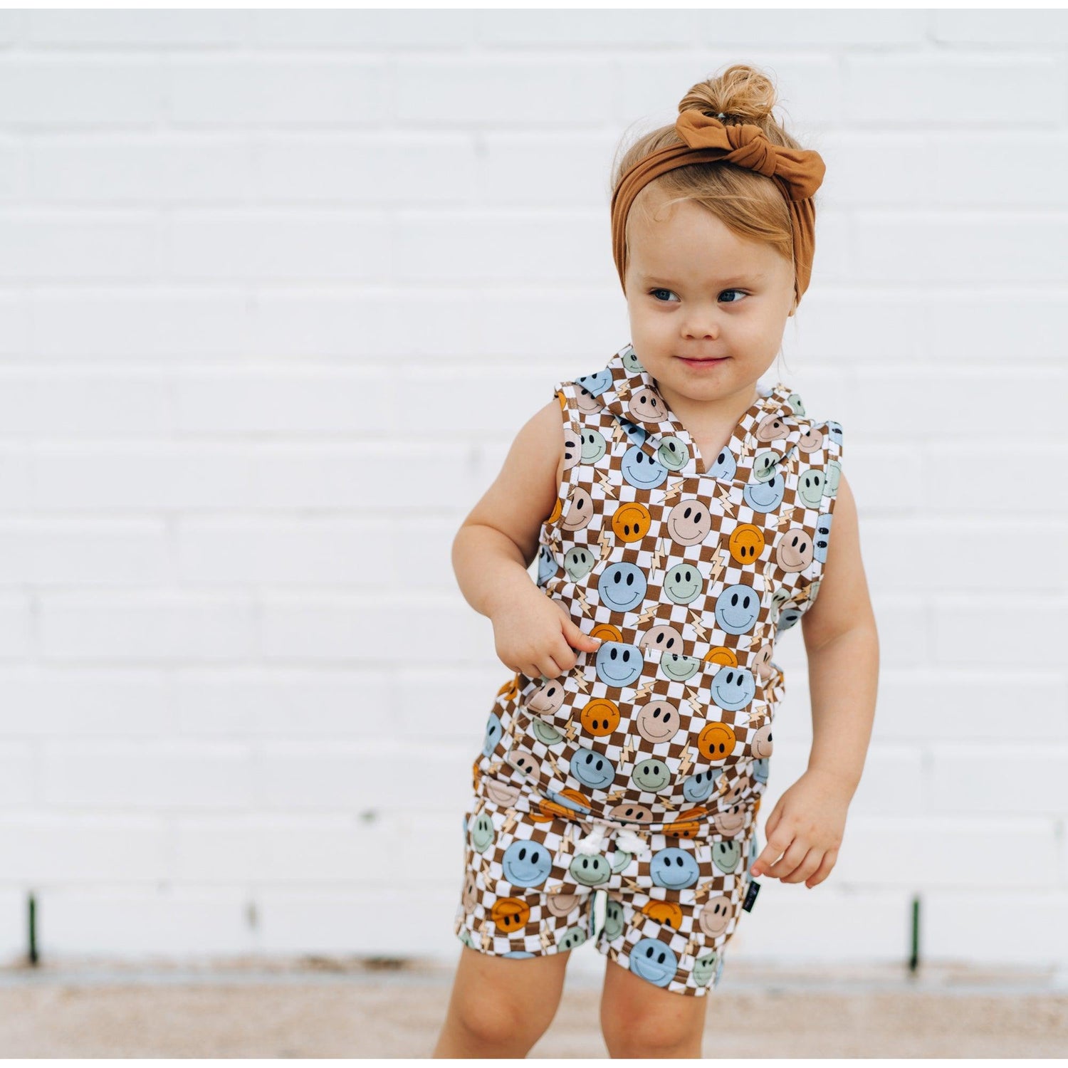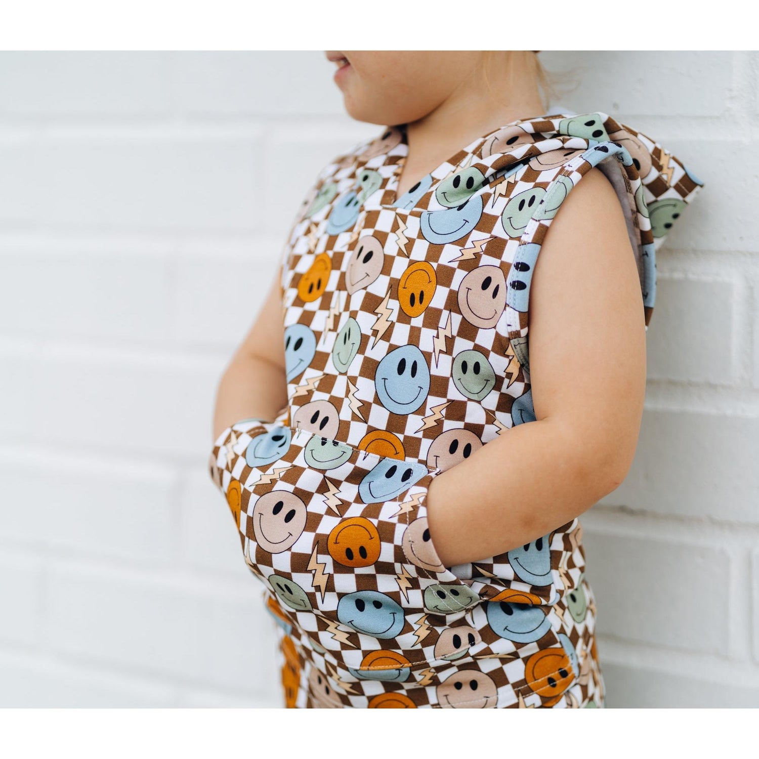 BAMBOO HOODIE TANK- Beige Happy Smiles - 0/6M is backordered and will ship as soon as it is back in stock.
