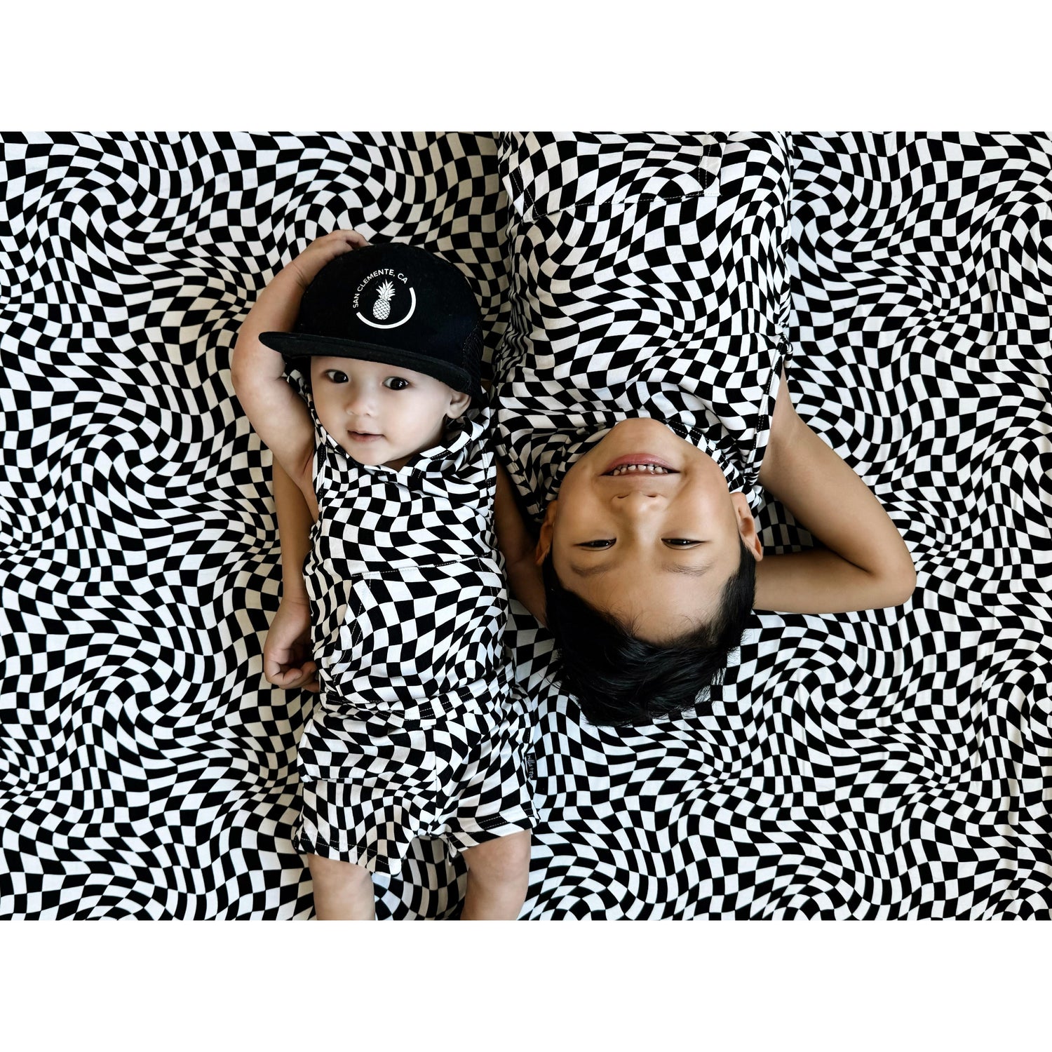 BAMBOO HOODIE TANK- Black Dizzy Check - 0/6M is backordered and will ship as soon as it is back in stock.