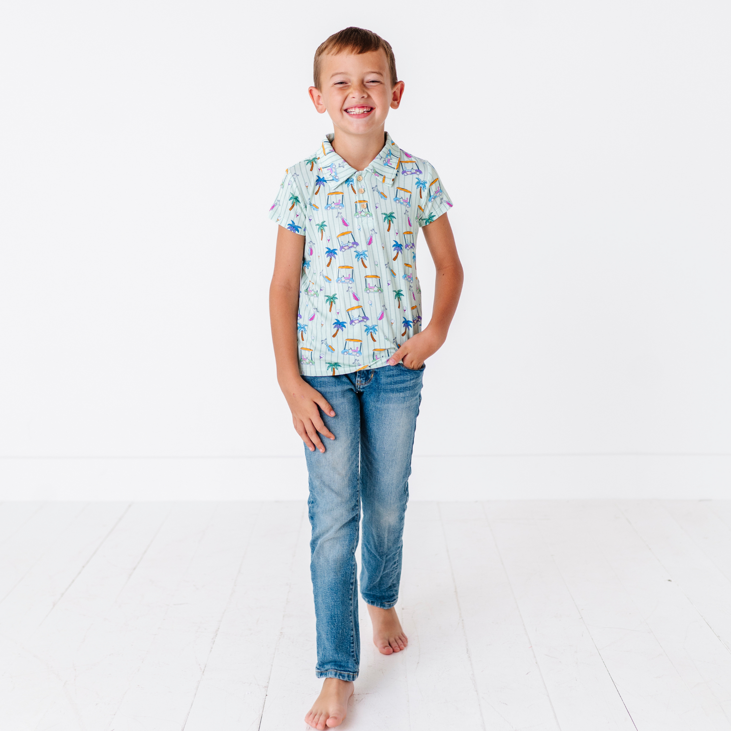 Daywear is here! Our new polos have been added by popular demand and like our jammies, they are SO soft. This polo is great for a round of golf or for lounging around the house. Trust us, this will be your kiddo's new favorite polo!