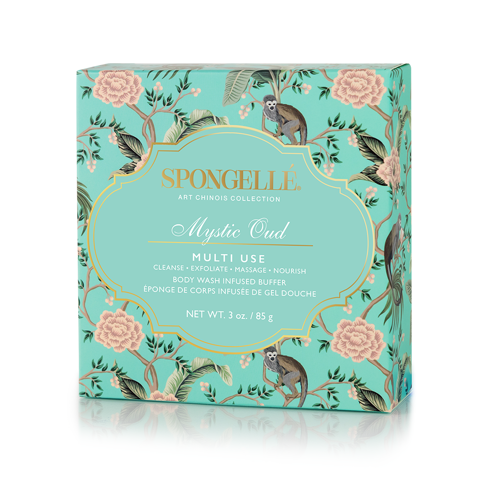 Discover historys rich style of exotic art and the elaborate decor of the 17th century. Animal motifs dance among lush fragrances creating a masterpiece designed for the ultimate pampering experience. Spongelles Art Chinois in Mystic Oud Body Wash Infused Buffer cleanses, exfoliates, massages, and nourishes your skin in the sultry aroma of bergamot, carnation, and oud.