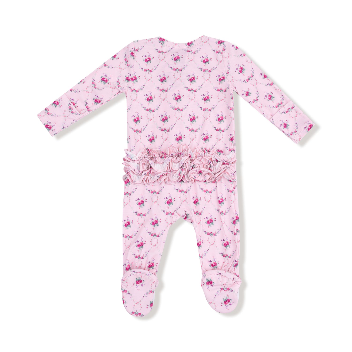2 Way Ruffle Zipper Footie - Rose Garden Trellis