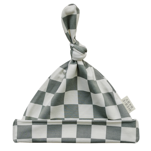 Light Green Checkered Bamboo Newborn Knot Hat