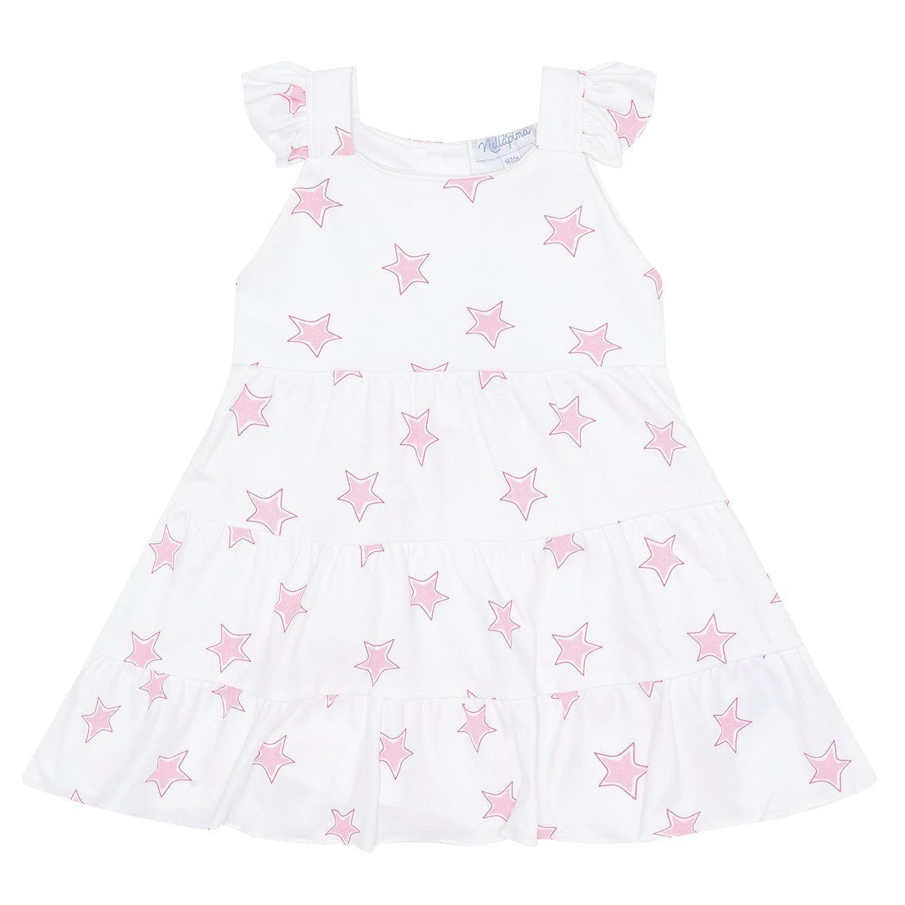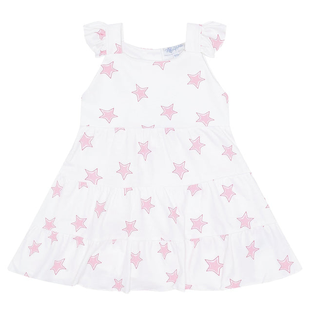 Get ready to shine in this Pink Stars Print Ruffle Dress! Made with 100% Pima Cotton, this dress is soft, comfortable, and perfect for any occasion. Step out in style and make a statement with the playful print and ruffle details. (Caution: may cause compliments and twirling).