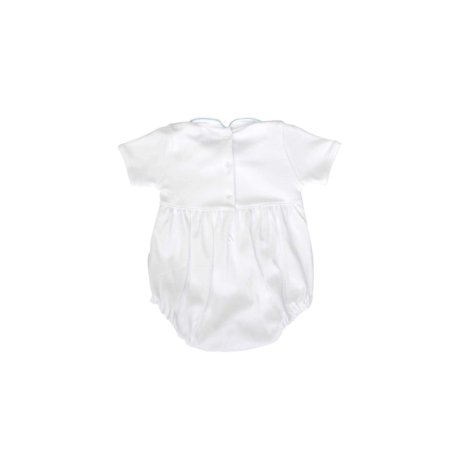 Adorable! This Nella Baby Boy Bubble is so cute. It has a perfect finish and smocked hand embroidery.
