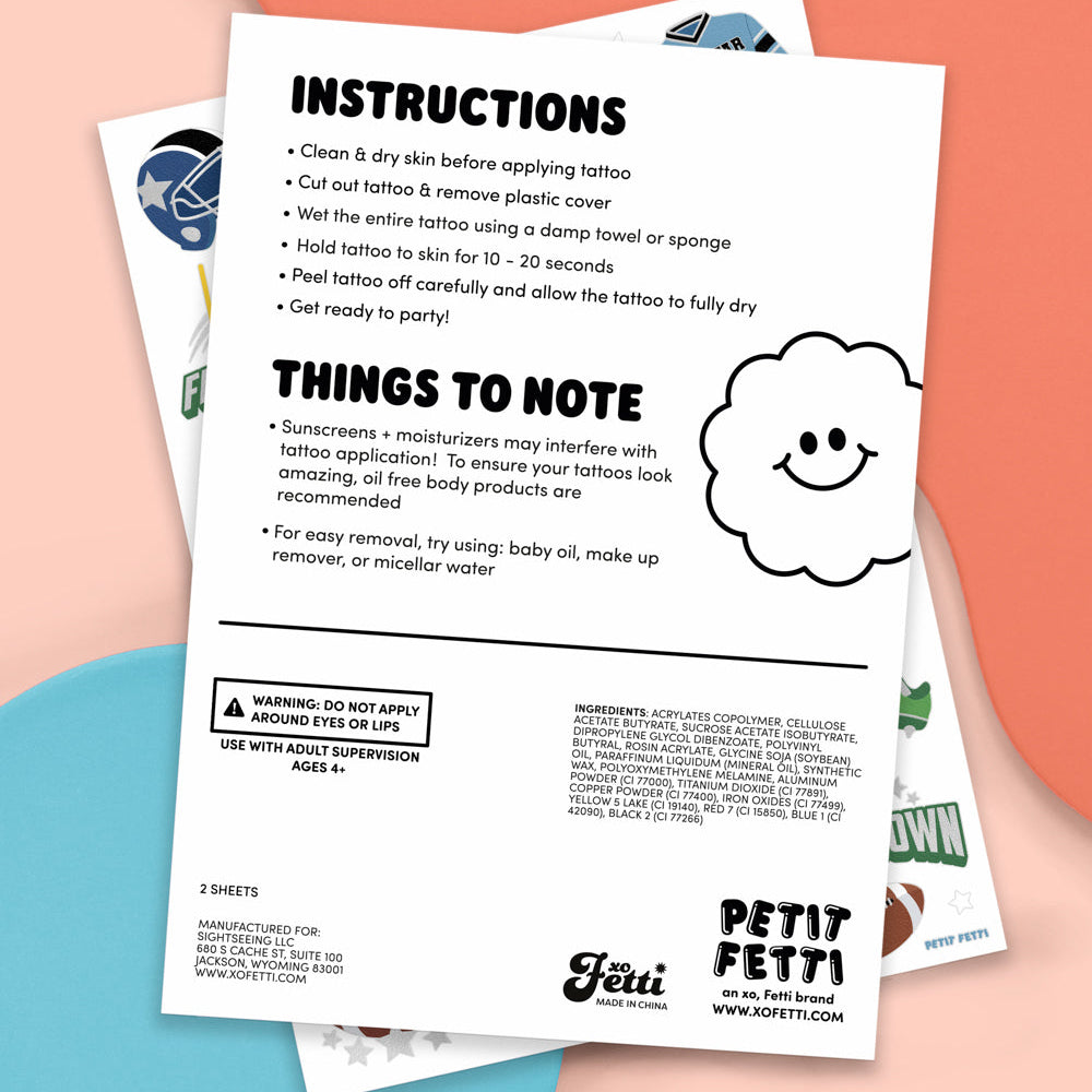 These football tats are the perfect team sport activity or party accessory! 60 designs total means no rookie or all star gets left behind - call your whole team, they're gonna wanna huddle up fast because these tats are a touchdown!
