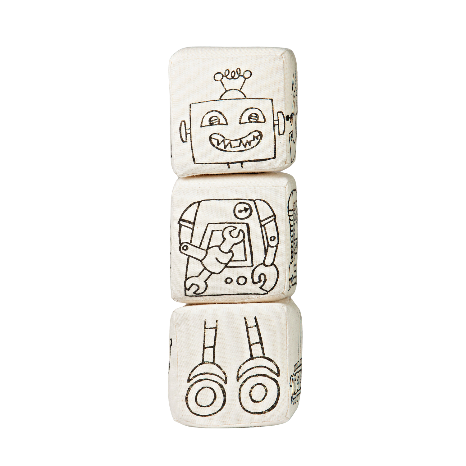 - They have cotton canvas fabric on the outside and are filed with a foam that is soft to be thrown and squeezed by little hands, but firm enough for them to color.