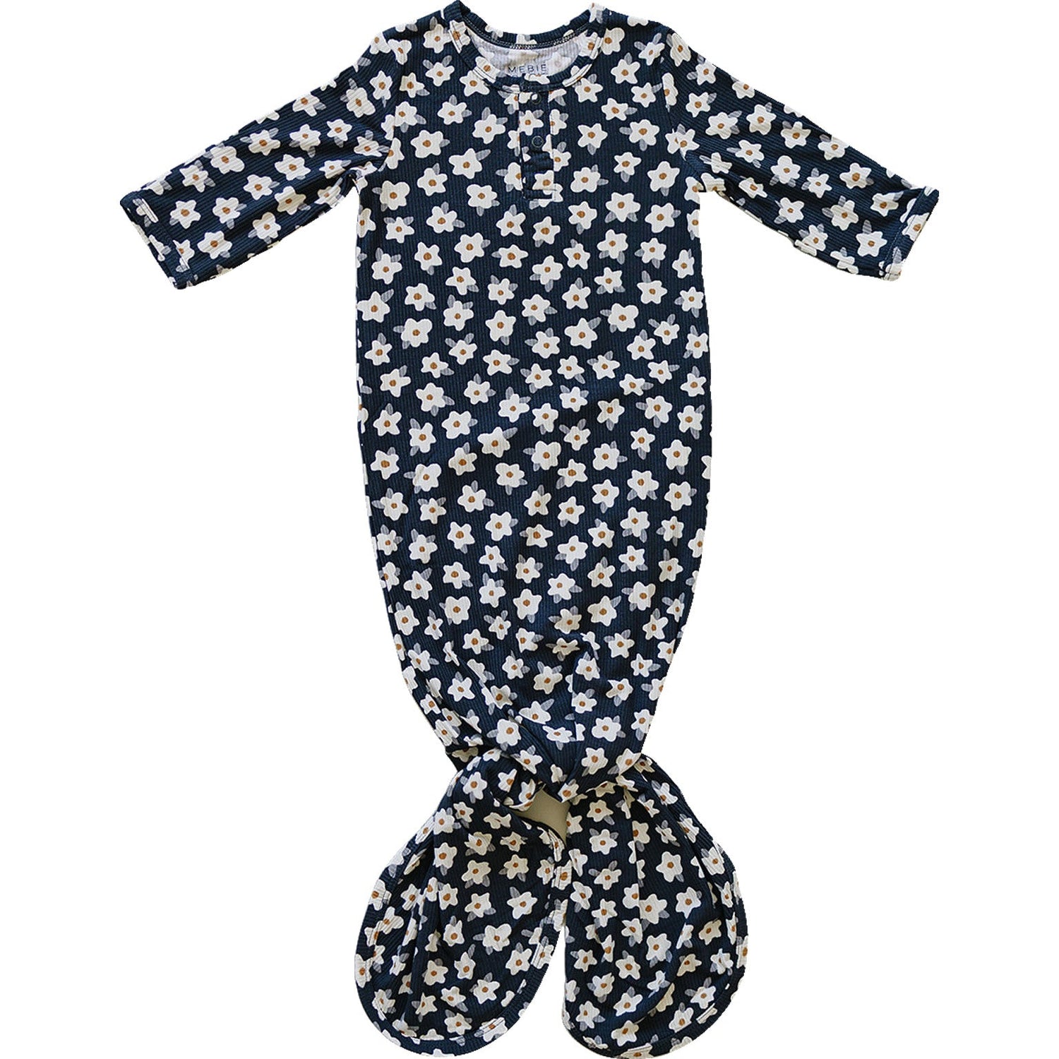 Navy Daisy Ribbed Bamboo Knot Gown - HoneyBug