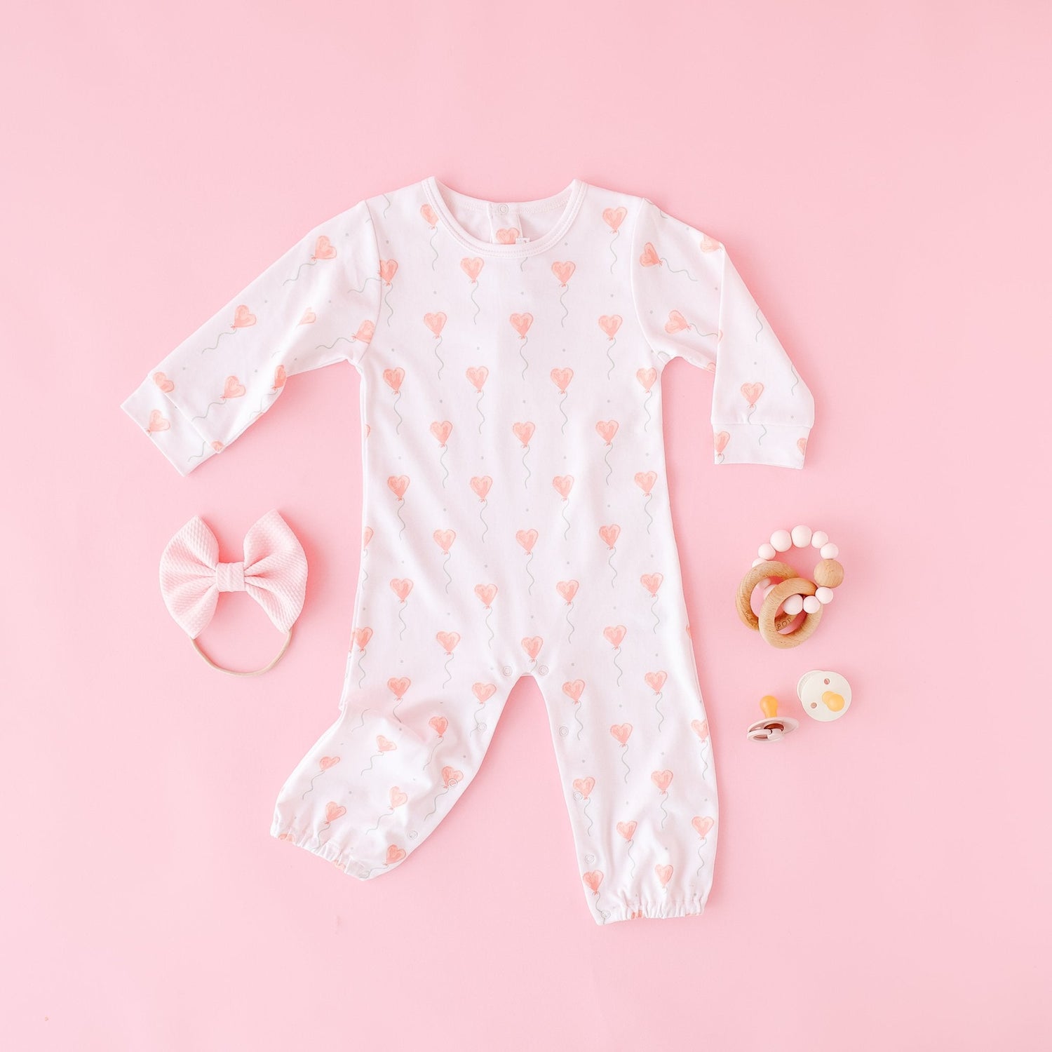 Pink Heart Balloon Romper - 0-3mo is backordered and will ship as soon as it is back in stock.