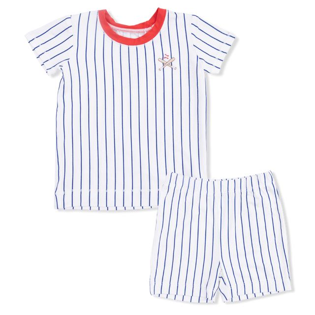 Baseball Stripe - Loungewear Short Set - 12-18M is backordered and will ship as soon as it is back in stock.