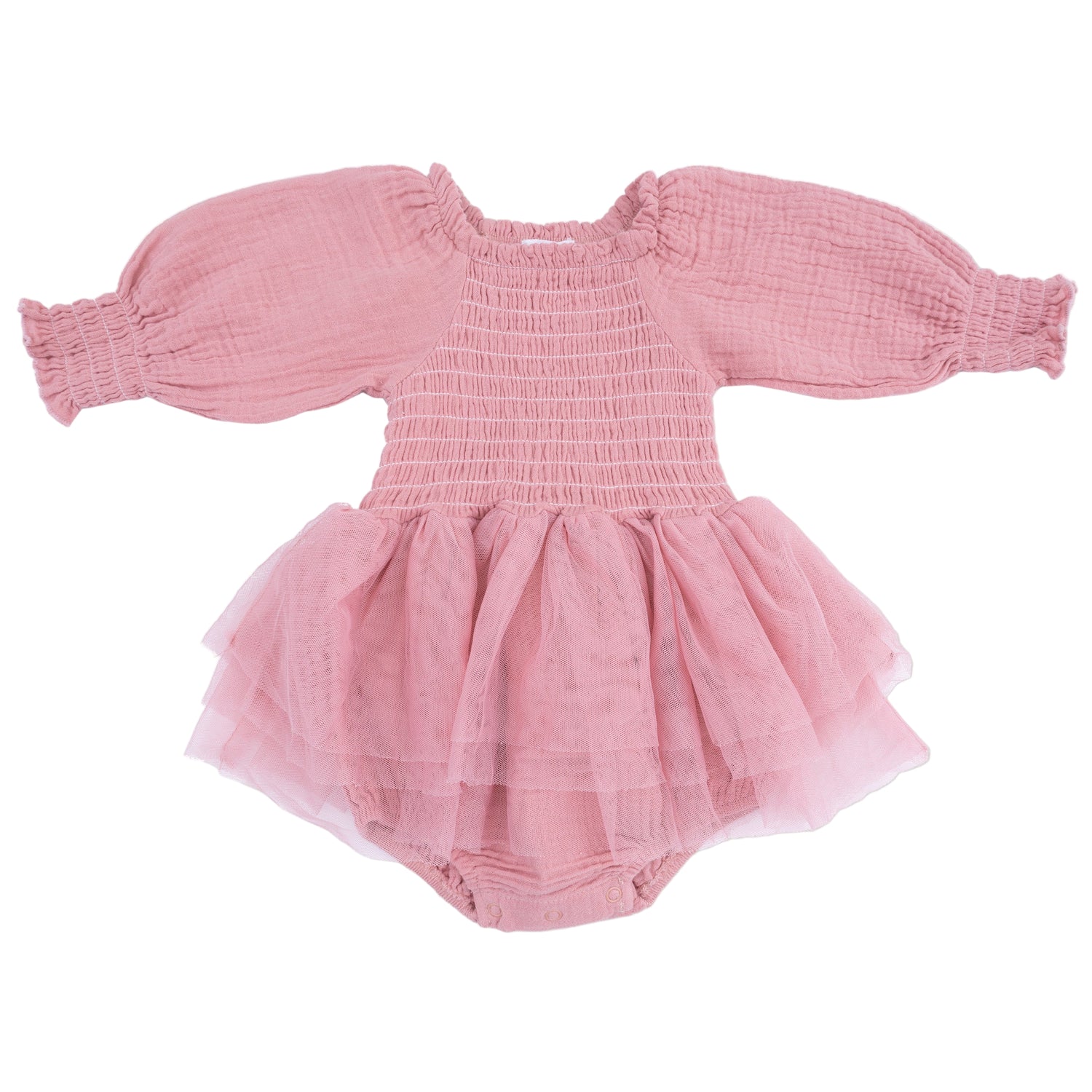 Long Sleeve Smocked Bubble with Tutu - Rose Elegance