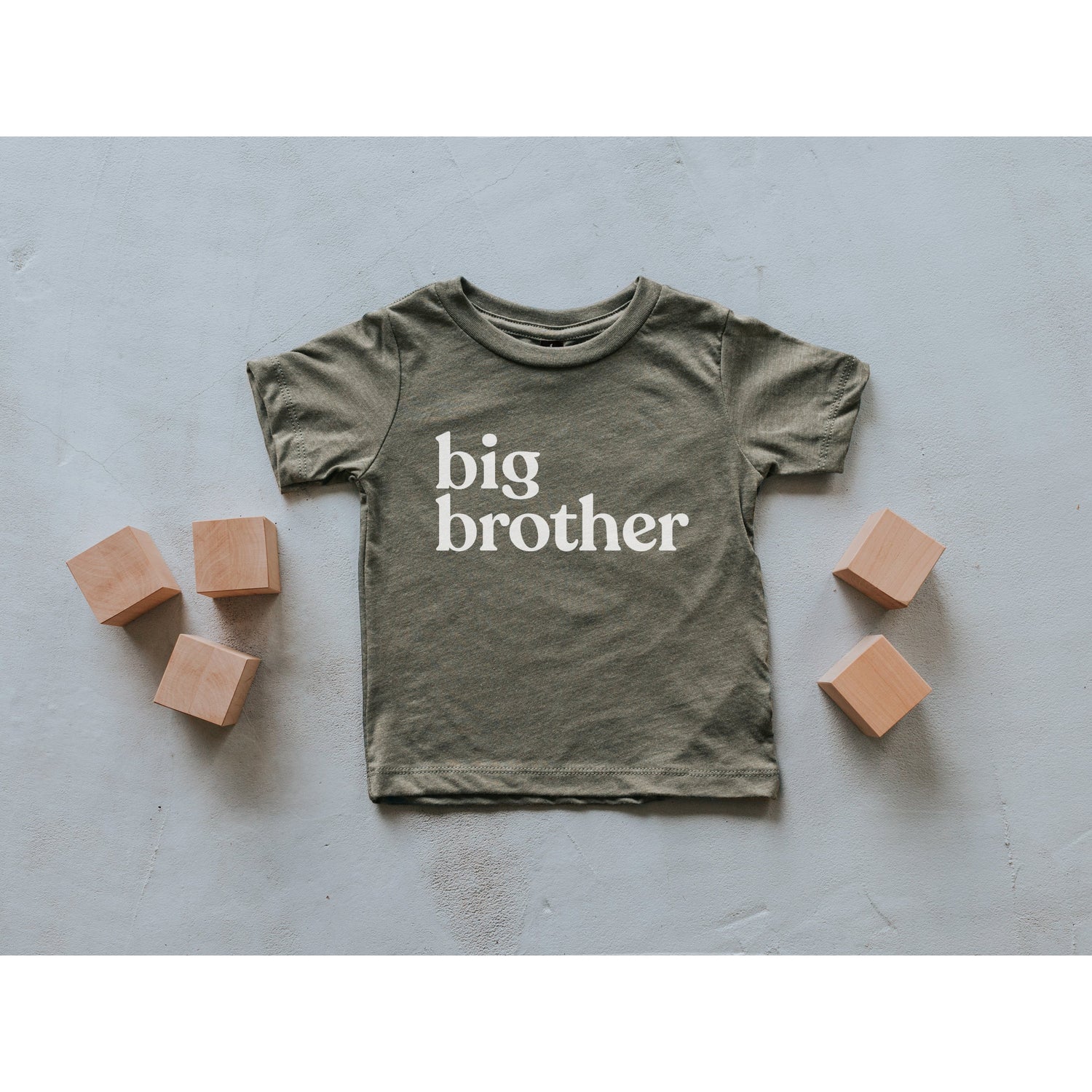Share sibling pride in style! This sweet kids' shirt features trendy typography in white ink on the super soft tri-blend olive fabric.