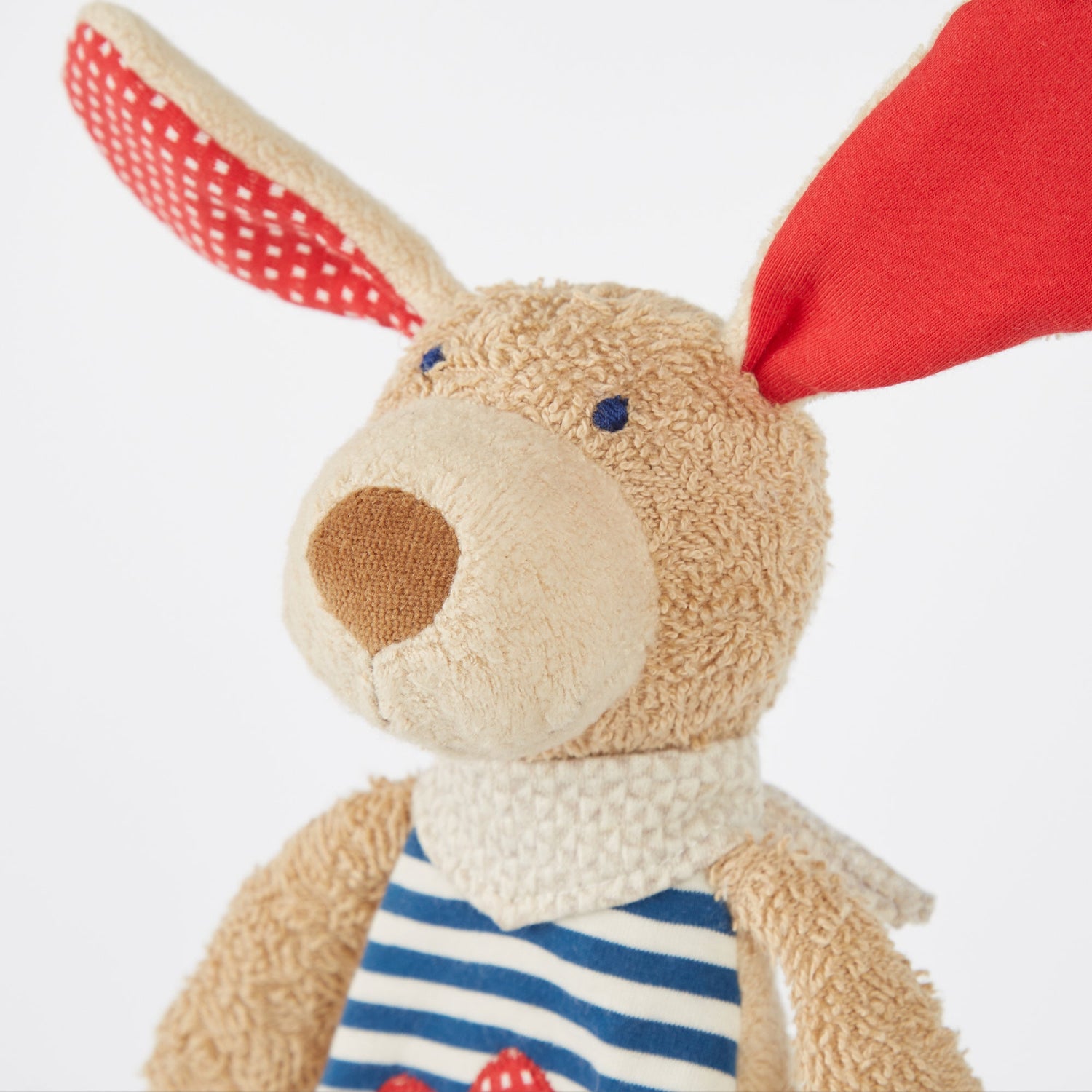 Its friendly blue stripes and appliquéd patches especially appeal to newborns, its backside is finished in soft brown fur. Hot tip: get a backup for this high-attachment toy, so you can turn tears into smiles in the case of loss.