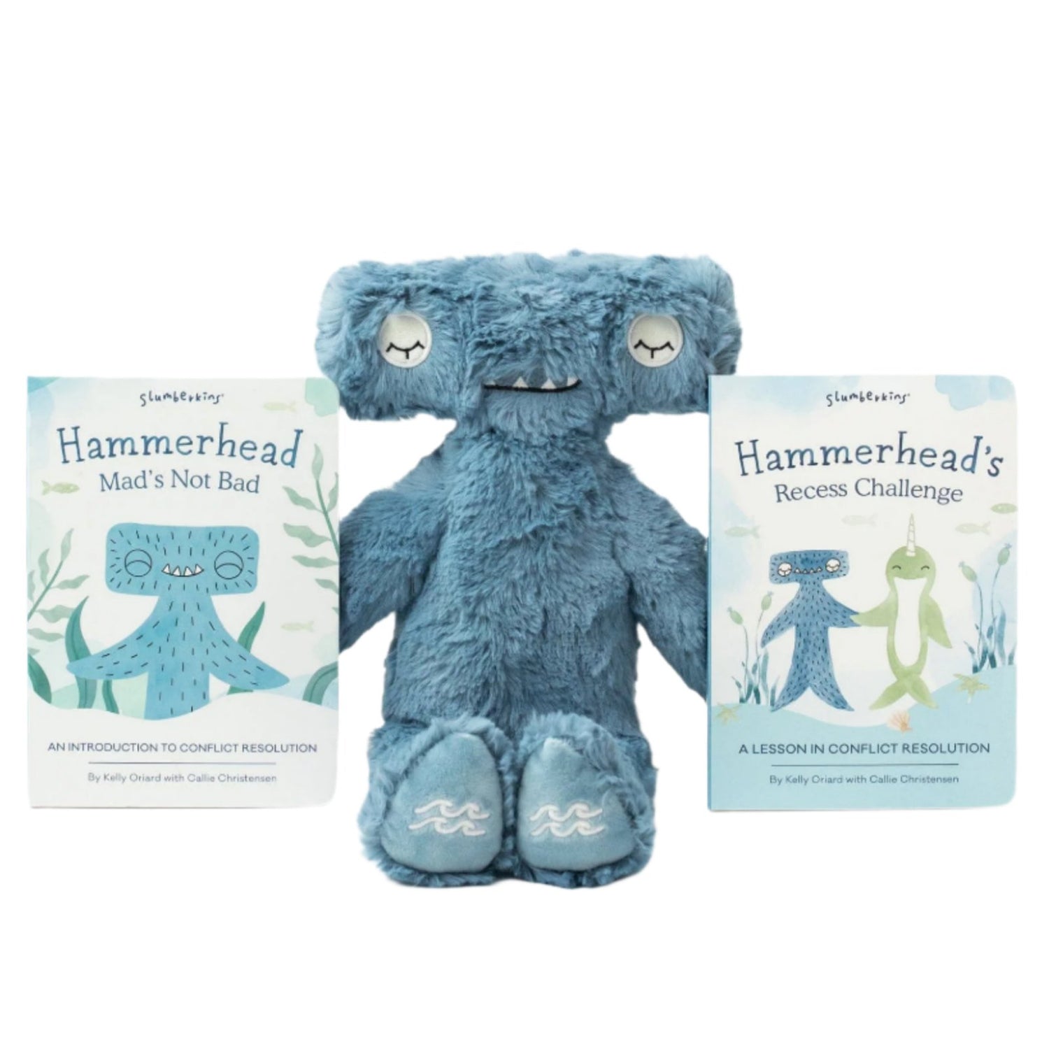 Together, this set uses foundational messages kids need to hear and examples of how to apply the practical strategies in their own lives to help children build skills for Conflict Resolution. The Hammerhead Kin and Board Books on Conflict Resolution set is more than just a toy—it's an educational tool that empowers little ones to understand their emotions and gain coping skills that can grow with them throughout their life.