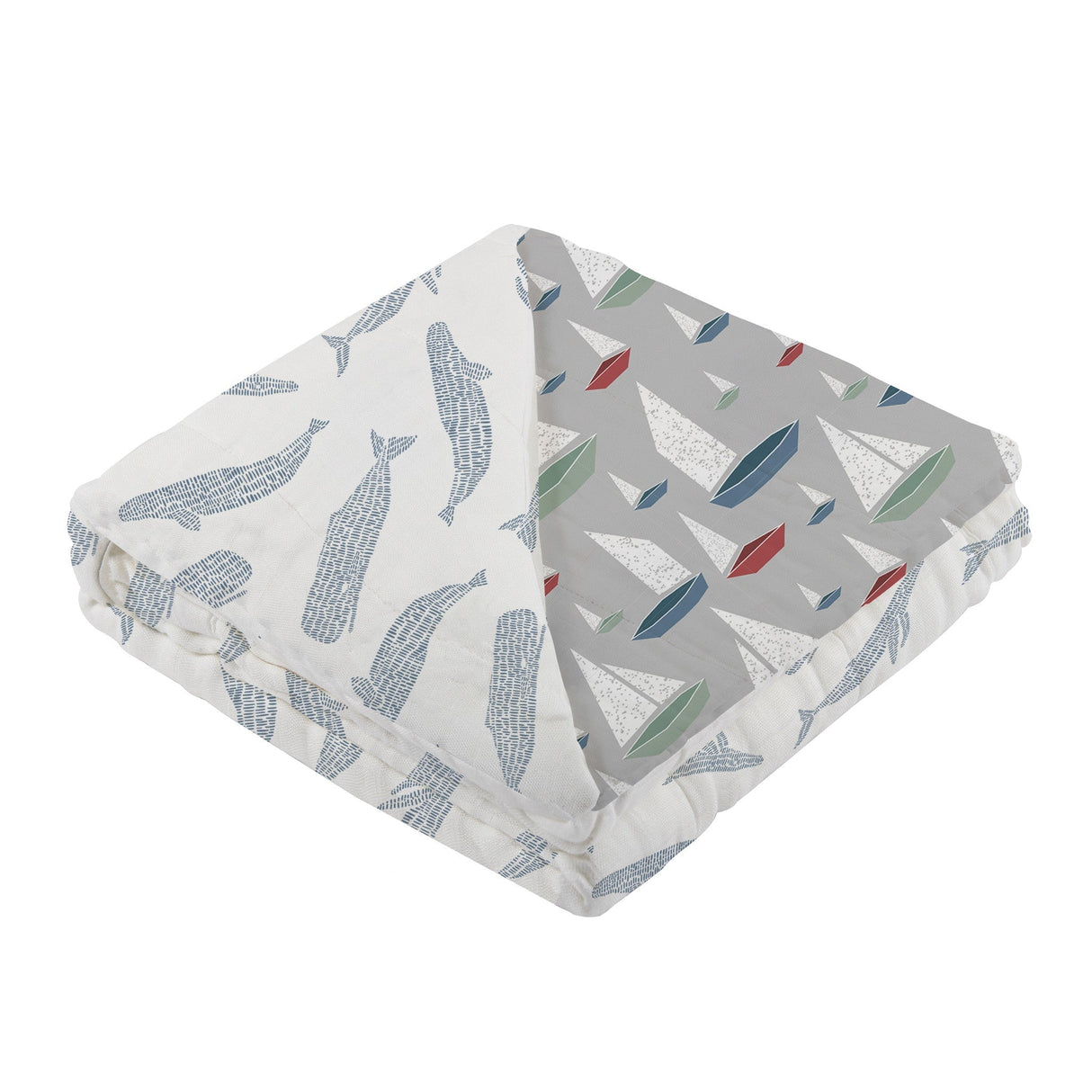 Blue Shadow Whales and Marina Sailboats Bamboo Newcastle Blanket - HoneyBug