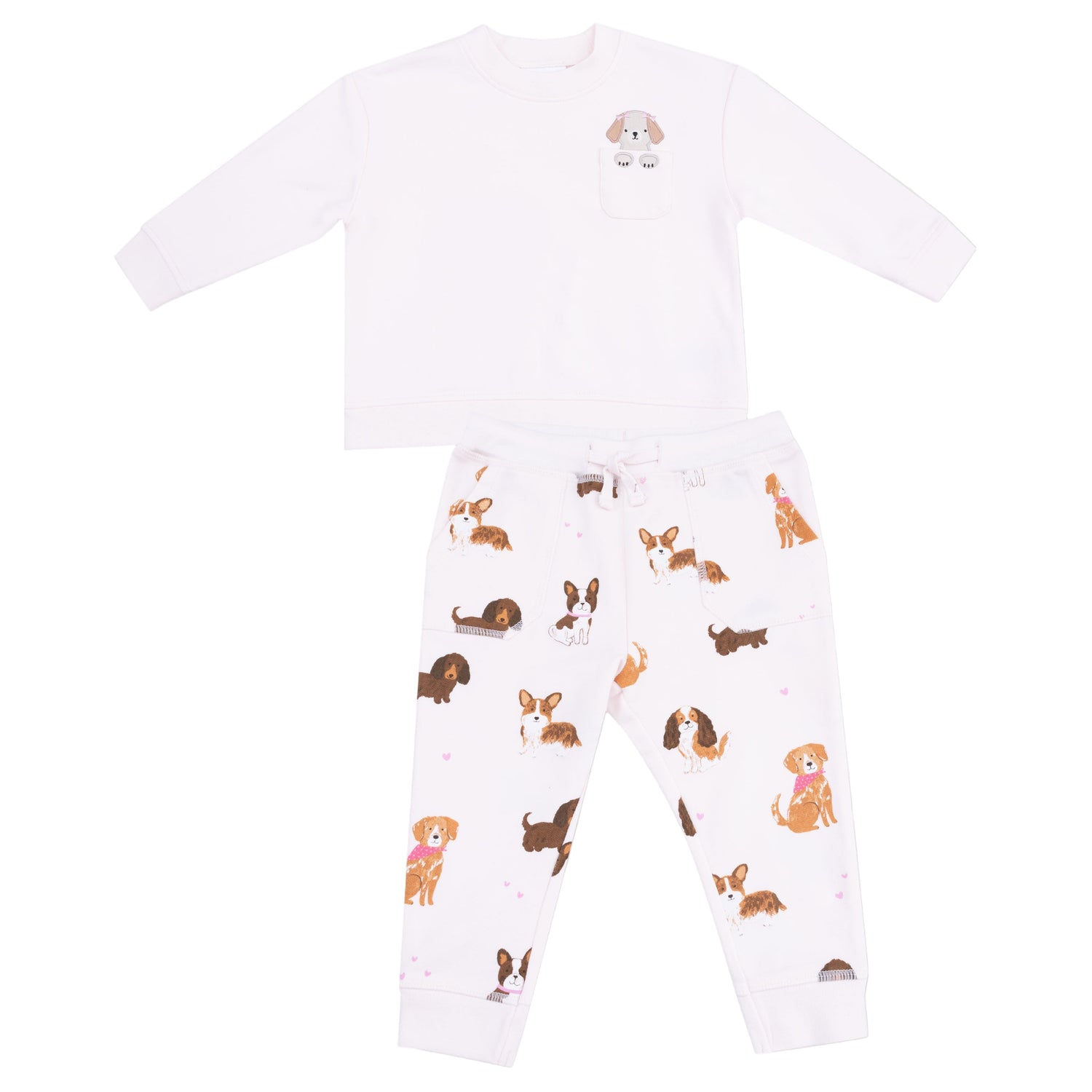 Drop Sleeve Sweatshirt and Jogger - Best Friend Dogs - Pink
