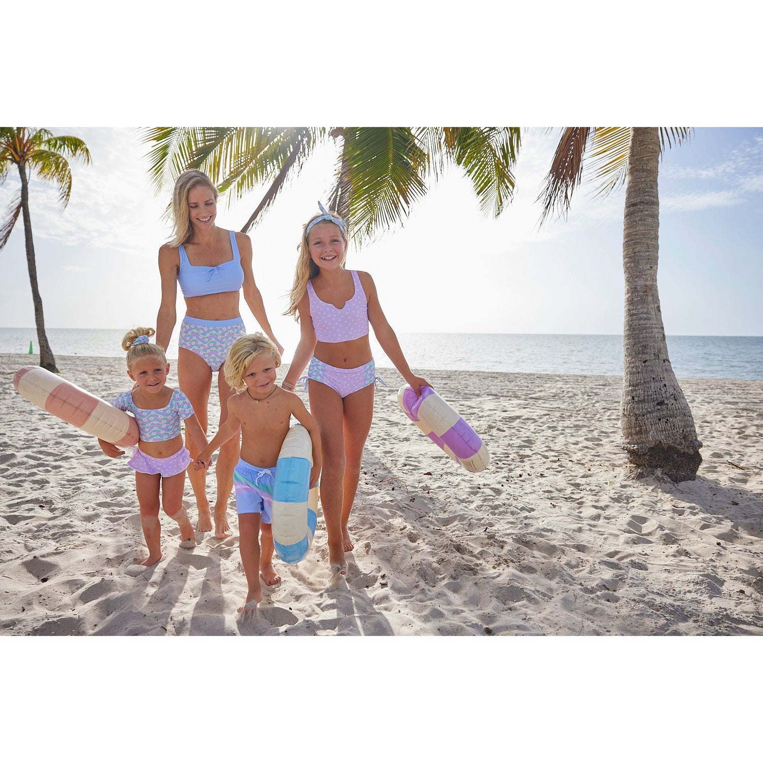 Fabric: This design is made with our premium buttery soft UPF/SPF 50+ swim fabric which is composed of a blend of polyester and elastane giving this style durability, comfort and quick drying capabilities. We love this fabric for its anti-pilling & chlorine-resistant properties!