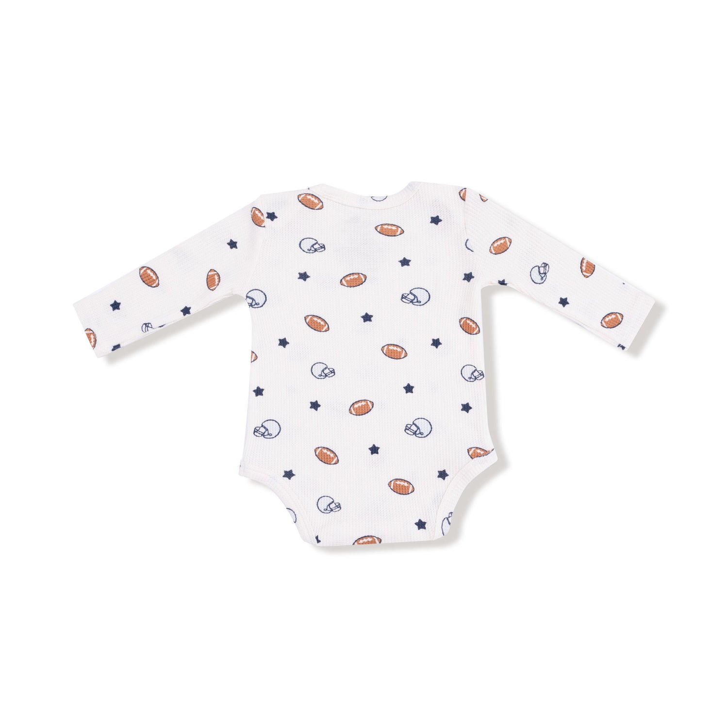 Lap Shoulder Bodysuit - Footballs and Stars - 0-3M is backordered and will ship as soon as it is back in stock.