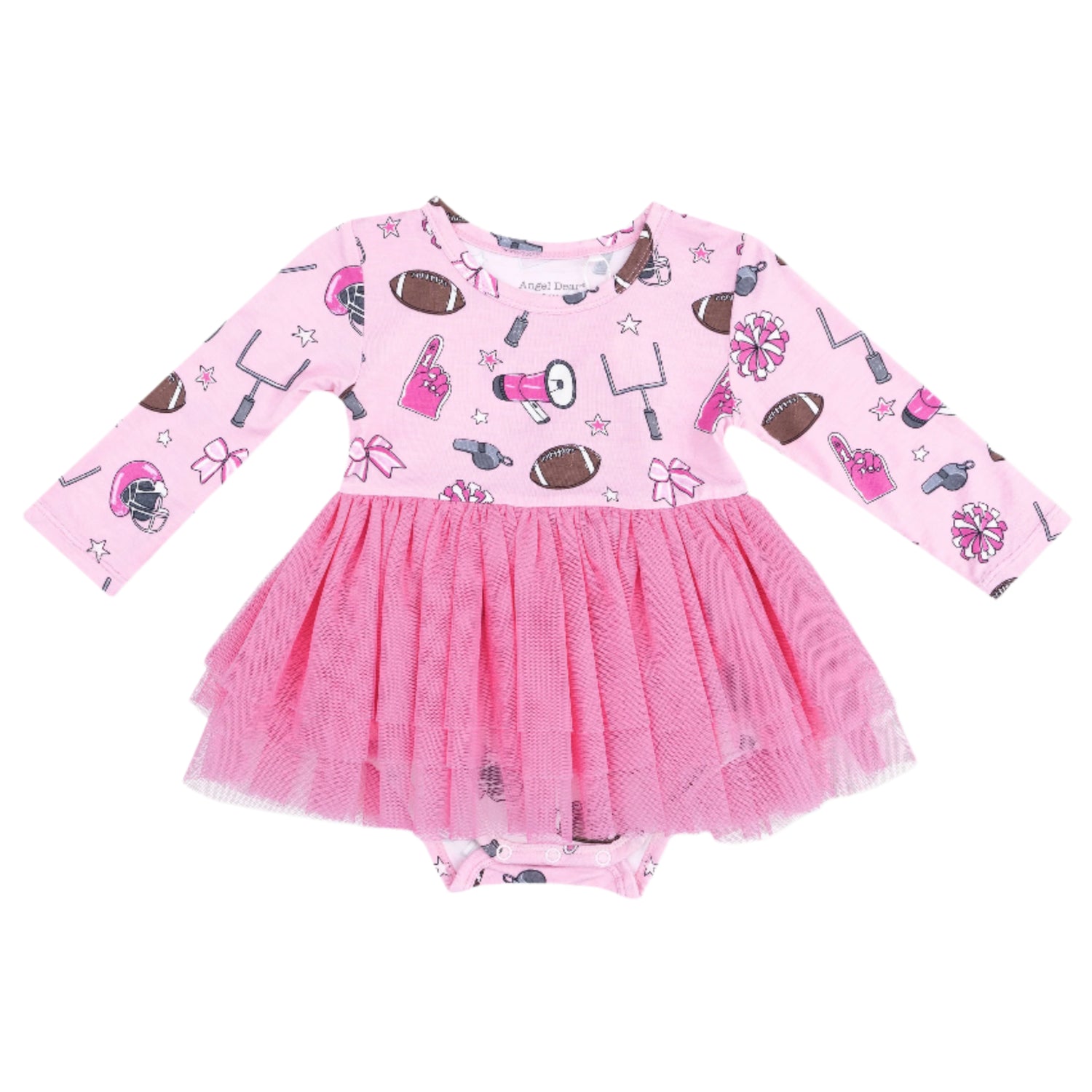 Long Sleeve Tutu Bodysuit - Game Day Pink