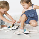 Flip through Panda's day, from greetings, to lunch, all the way to bedtime with this lovable friend who will stimulate your child's curiosity while following the rhythm and comfort of a daily routine. This clever toy is part cuddle buddy and part flip book with heartwarming faces designed to mirror a toddler's most common feelings and experiences to help them develop their emotional intelligence. Made in India using certified organic fabrics and ethical practices, and arrives in a drawstring linen gift bag/storage bag.