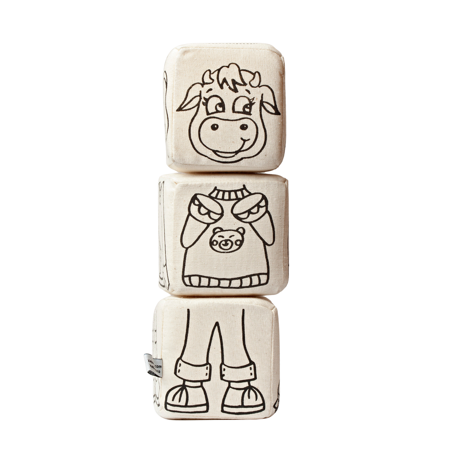 - They have cotton canvas fabric on the outside and are filed with a foam that is soft to be thrown and squeezed by little hands, but firm enough for them to color.