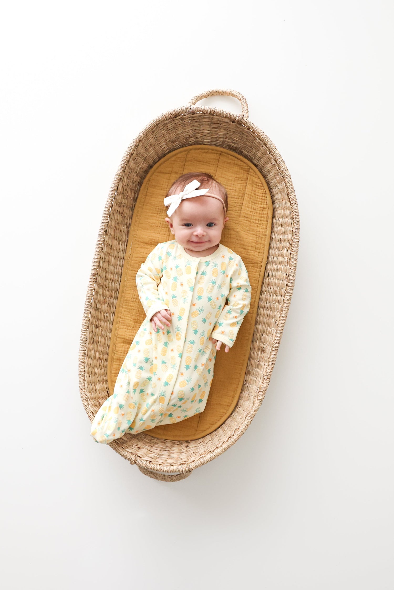 The perfect blend of comfort and convenience, our Converter Gown is designed to adapt to your baby’s needs. This versatile piece easily transitions from a gown to pants with simple snaps, making diaper changes quick and hassle-free.