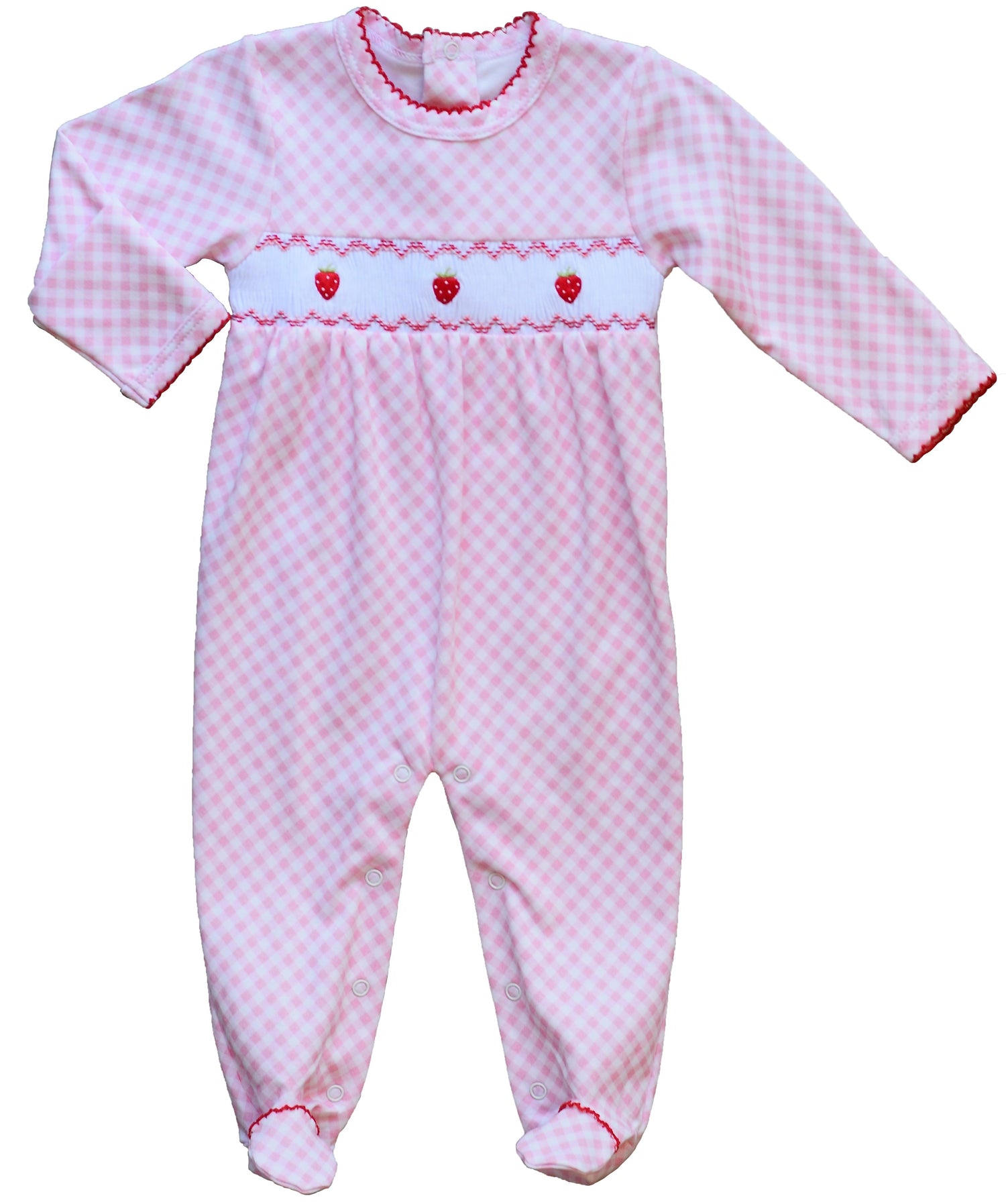 Pink Gingham Strawberry Smocked Footie - HoneyBug