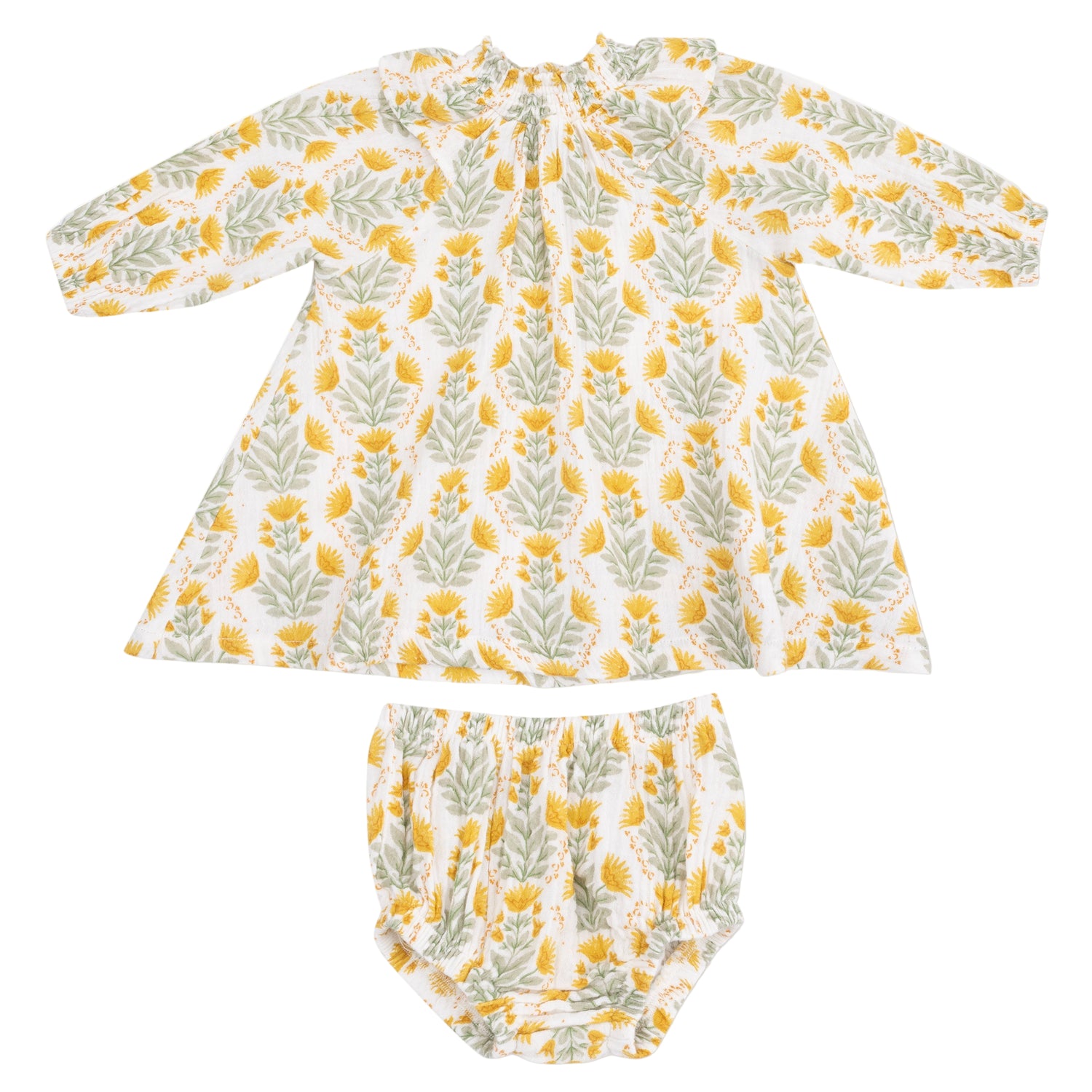 Long Sleeve Ruffle Dress + Bloomer - Winter Dandelions