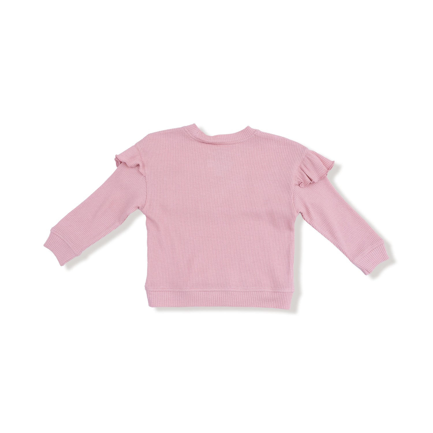 Waffle Knit Top: Warm, textured fabric with sweet ruffle details