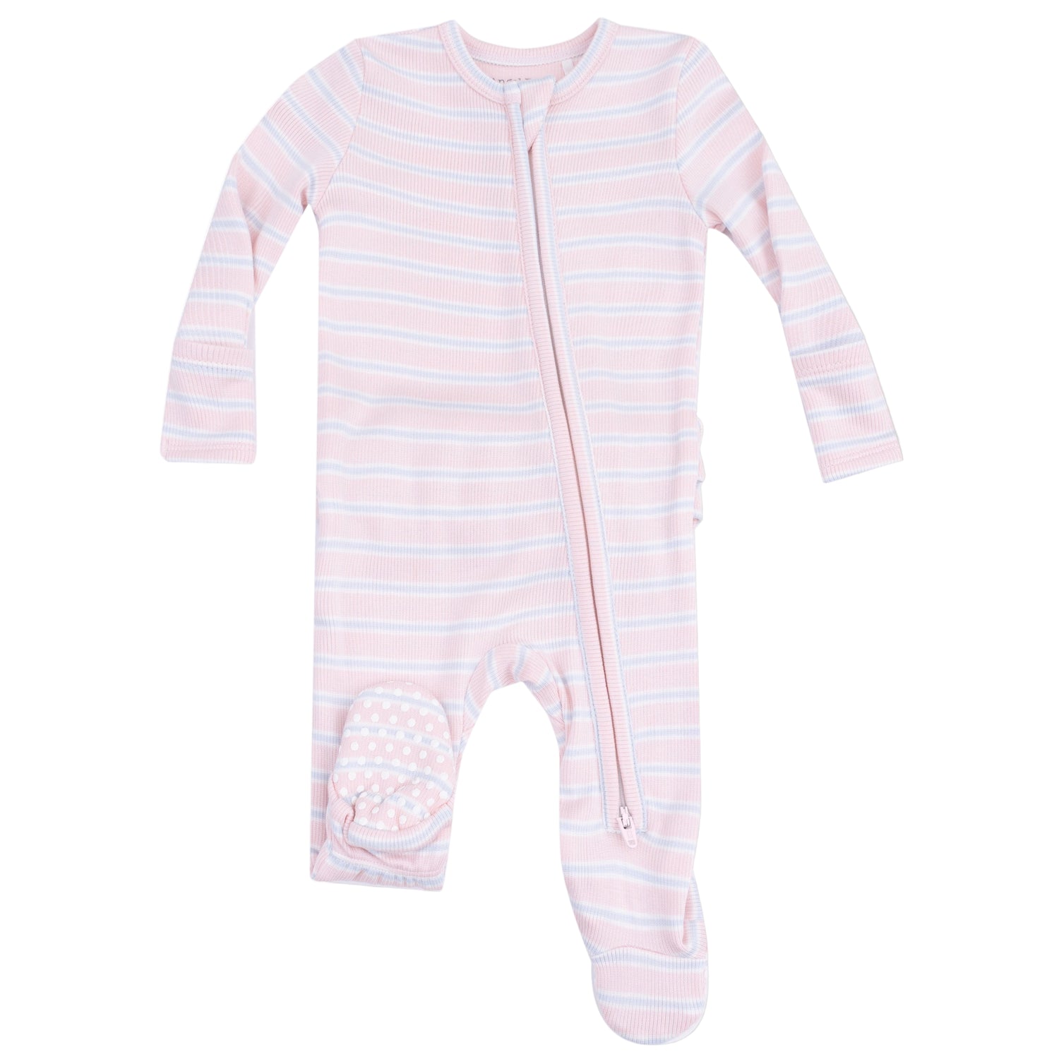 2 Way Zipper Ruffle Back Footie - Pink Multi Stripe - HoneyBug