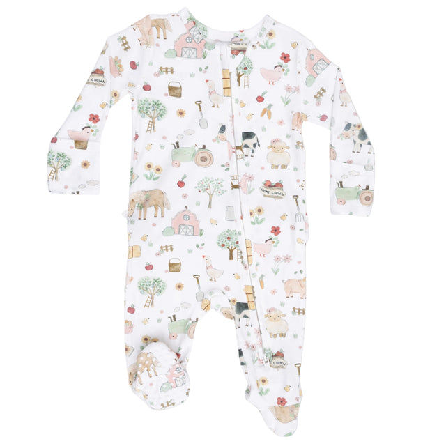 Cute Farm Animals Pink - 2 Way Ruffle Back Zipper Footie