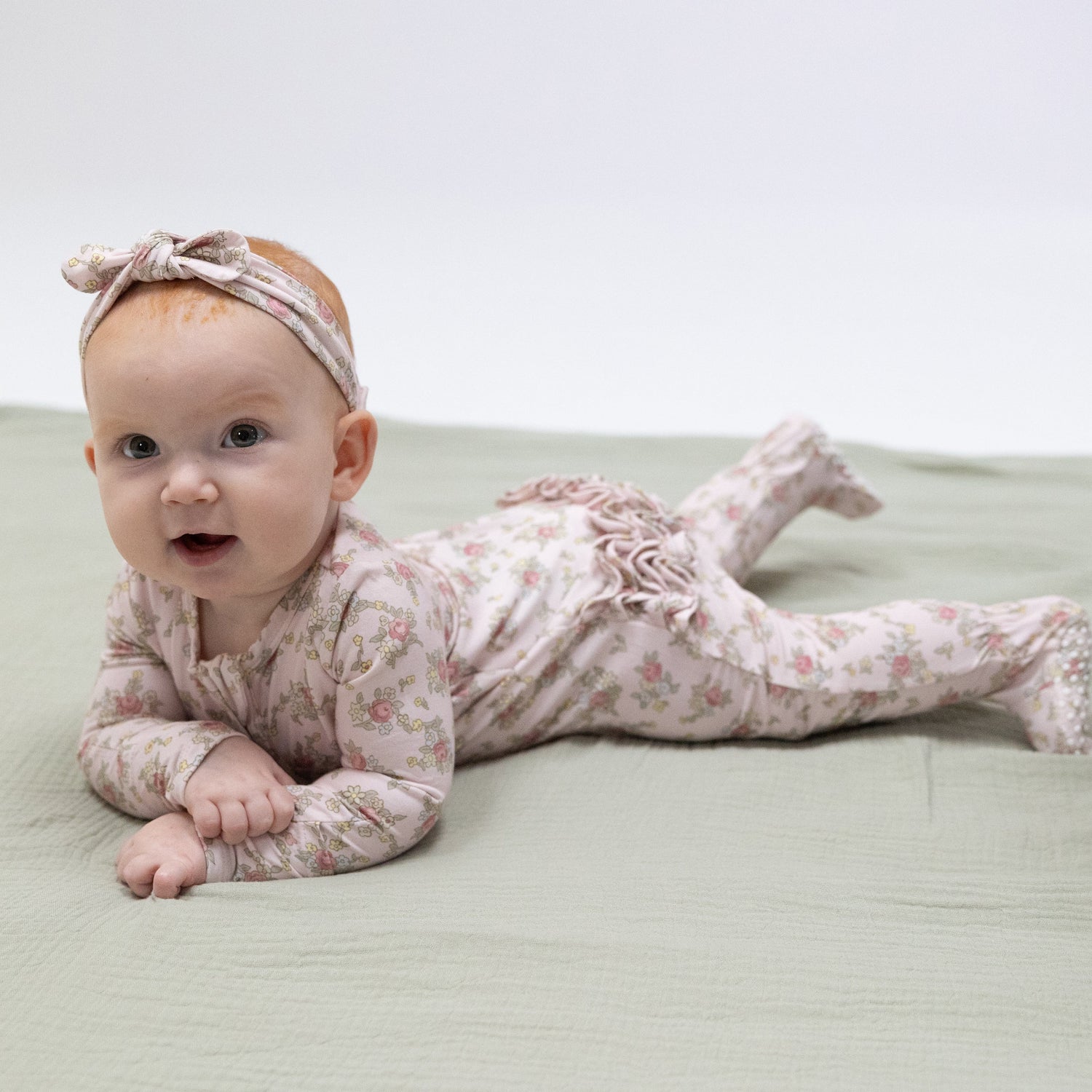 From dreamy naptimes to playful adventures, our Ruffle Back Footie wraps your little one in cozy comfort and delightful whimsy. Accessories sold separately.
