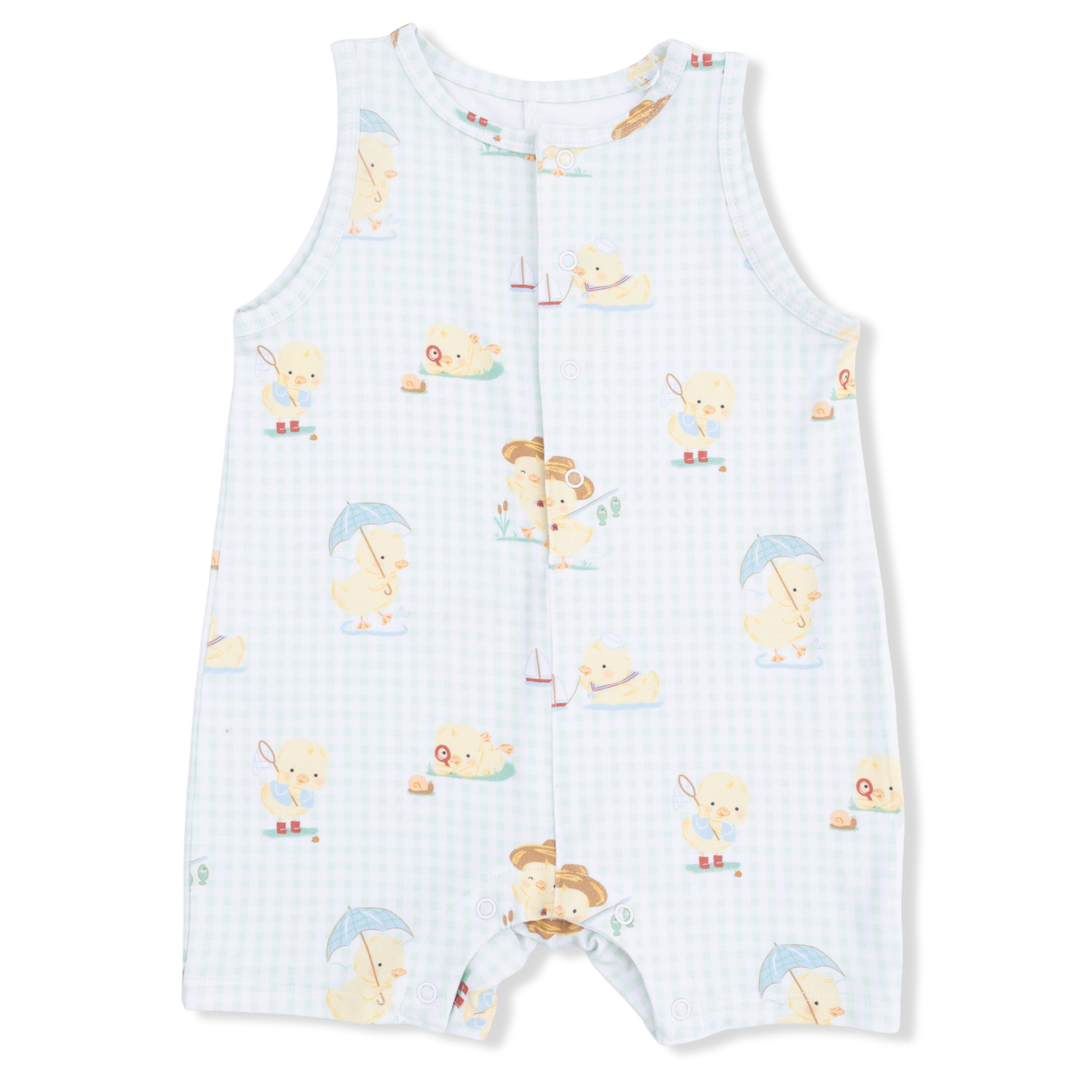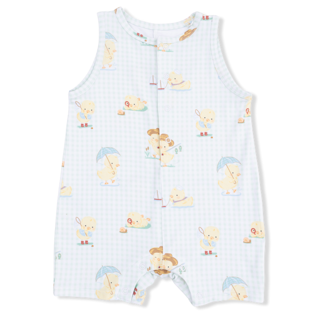 Vintage Spring Ducklings Green - Sleeveless Shortie Romper