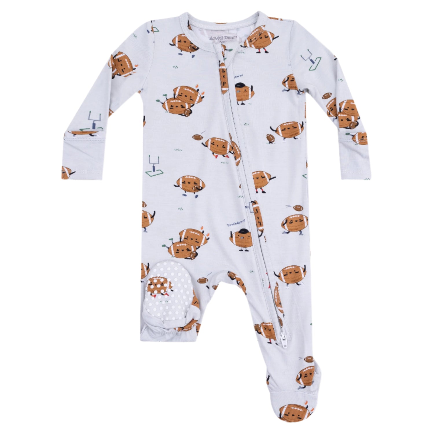 2 Way Zipper Footie - Footballs Playing Football - NB is backordered and will ship as soon as it is back in stock.