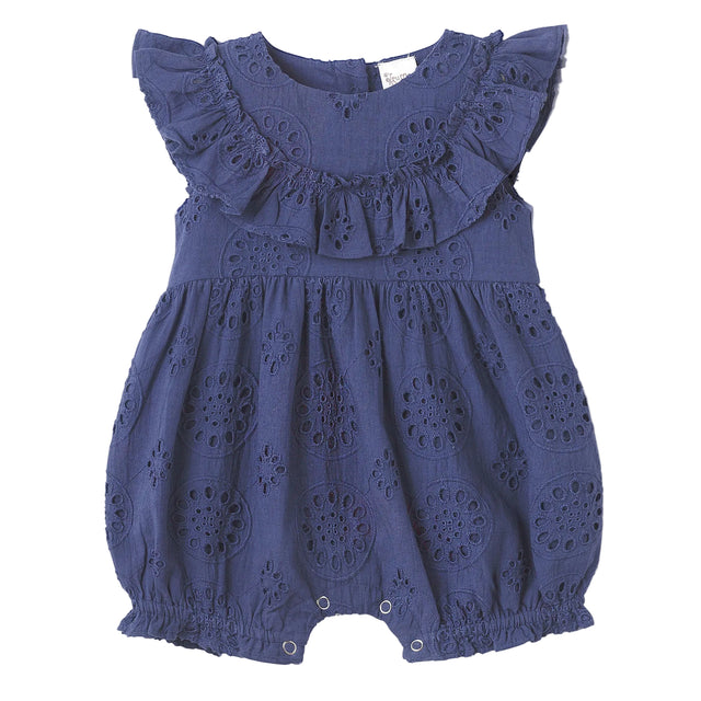 Baby Eyelet Romper Blue Cotton Ruffle One-Piece for Girls