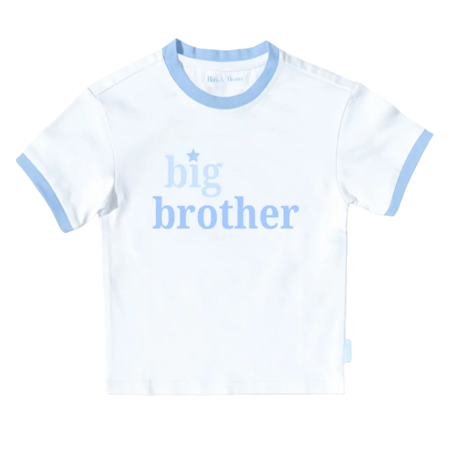 This classically cute white boys' t-shirt features soft fabric, a sweet "big brother" sentiment, and light blue collar and sleeve details for a playfully polished style perfect for celebrating that big sibling promotion!
