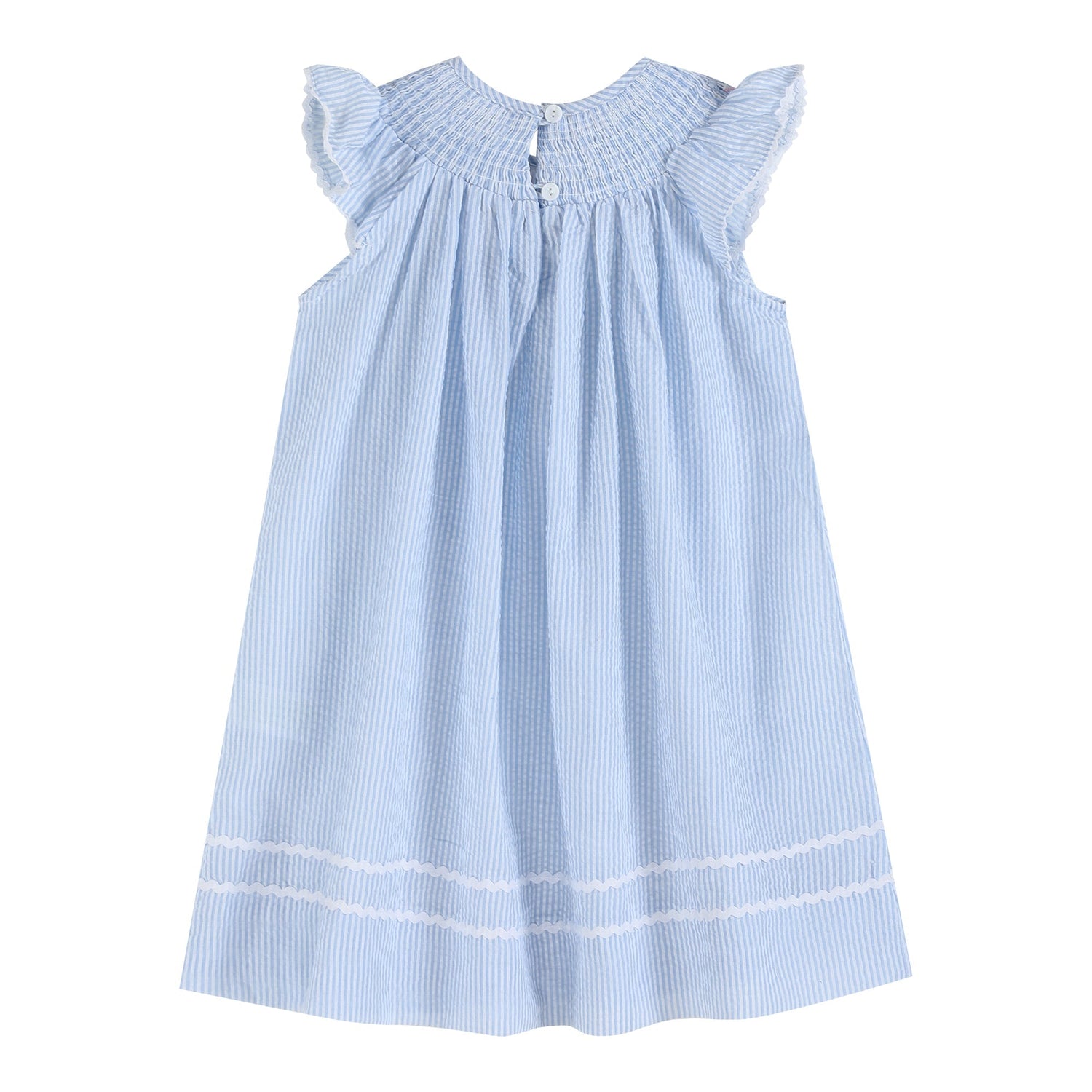 Blue Seersucker Easter Bunny Smocked Bishop Dress