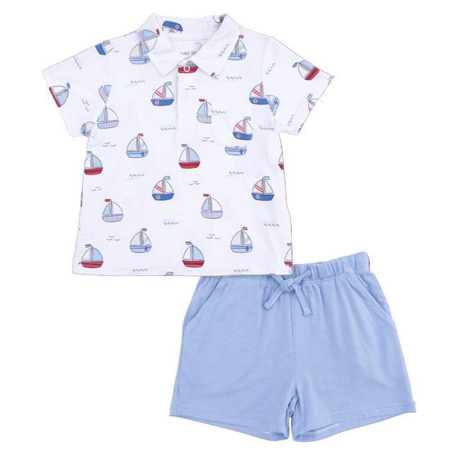 Bubbly Sailboats Blue - Polo with Casual Short - 6-12M is backordered and will ship as soon as it is back in stock.