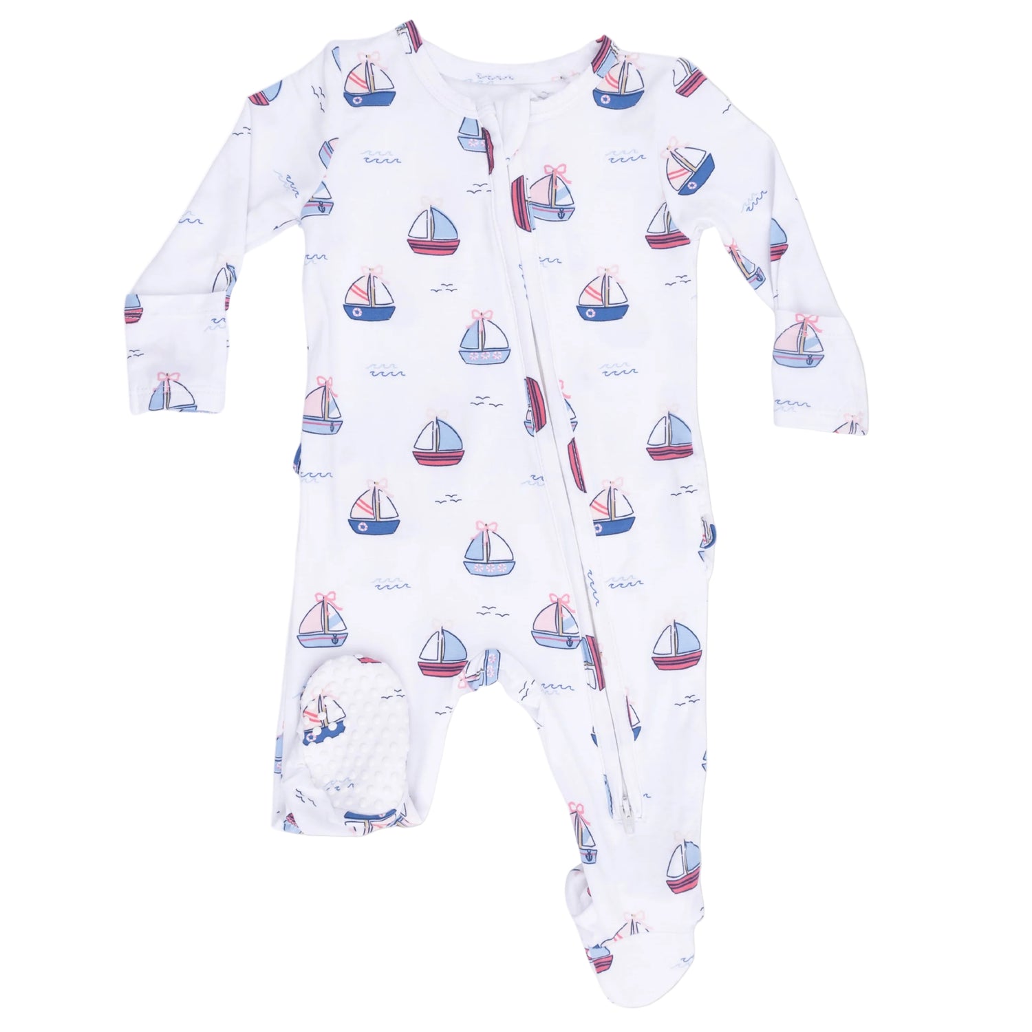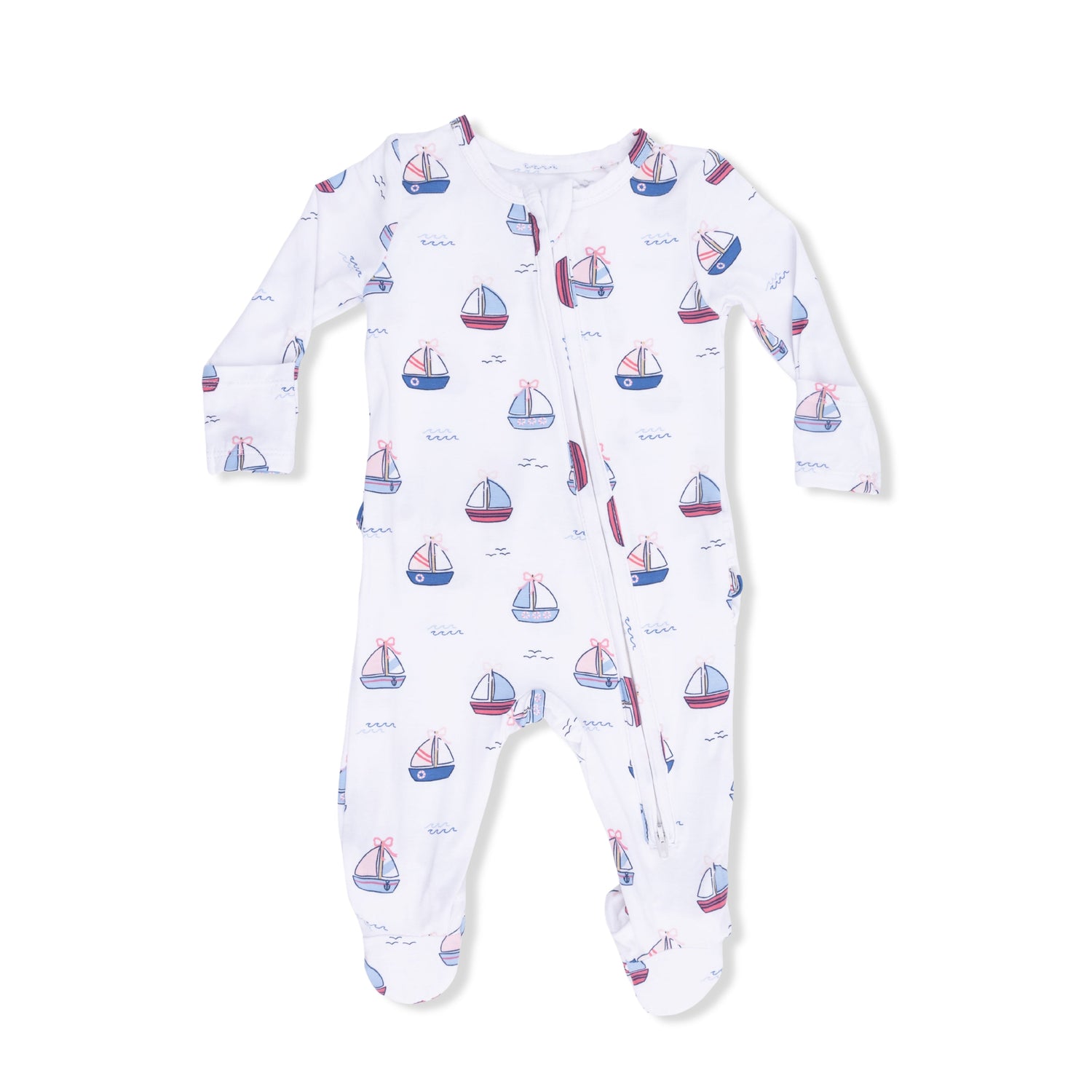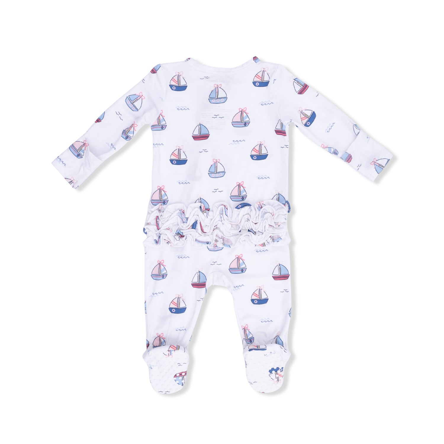 Bubbly Sailboats Pink - 2 Way Ruffle Back Zipper Footie