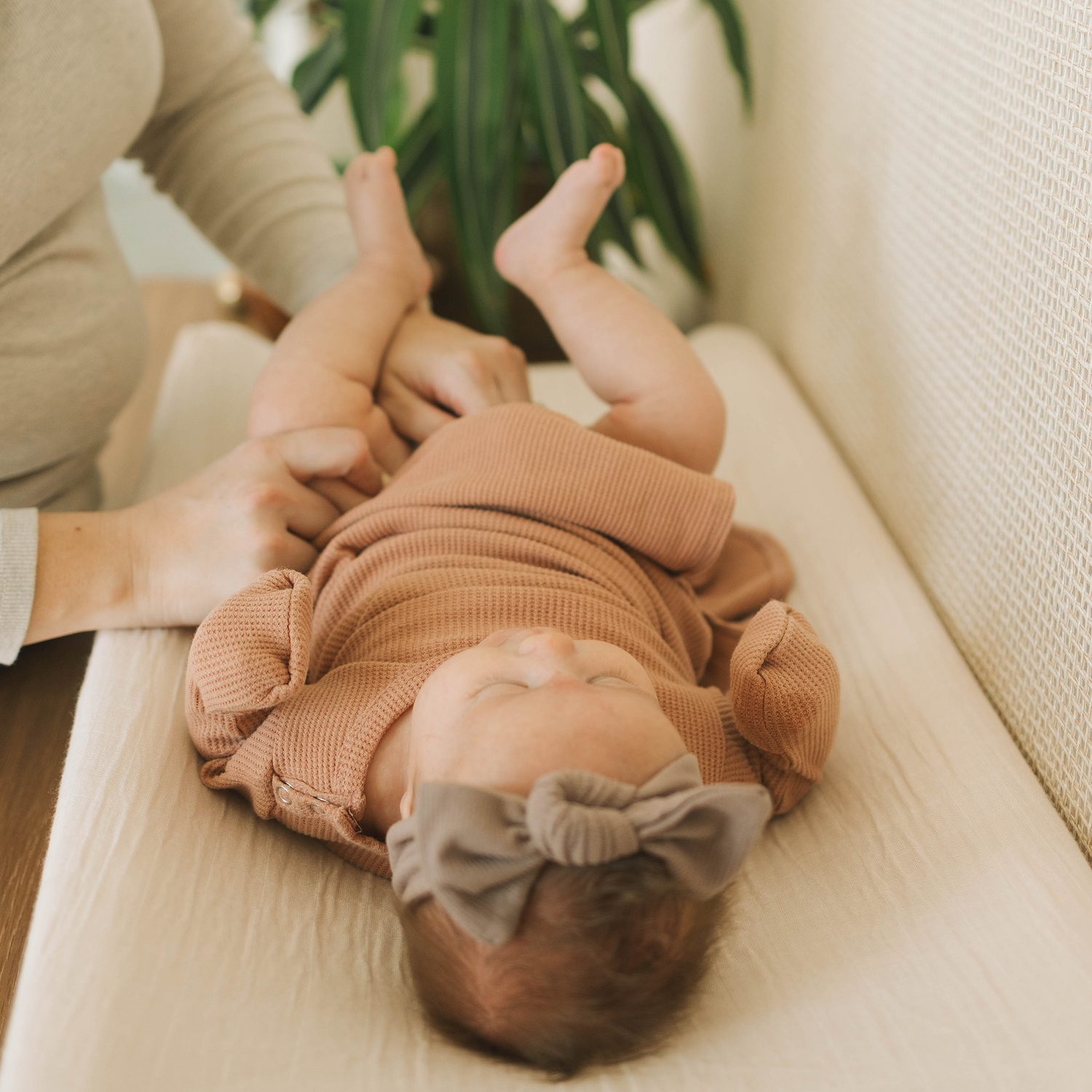 As soft as a baby's bottom but easier to clean! Designed in our signature prints to match your crib sheets, bibs, and modern nursery. Features an elastic edge for a snug fit and stitched holes for security straps.