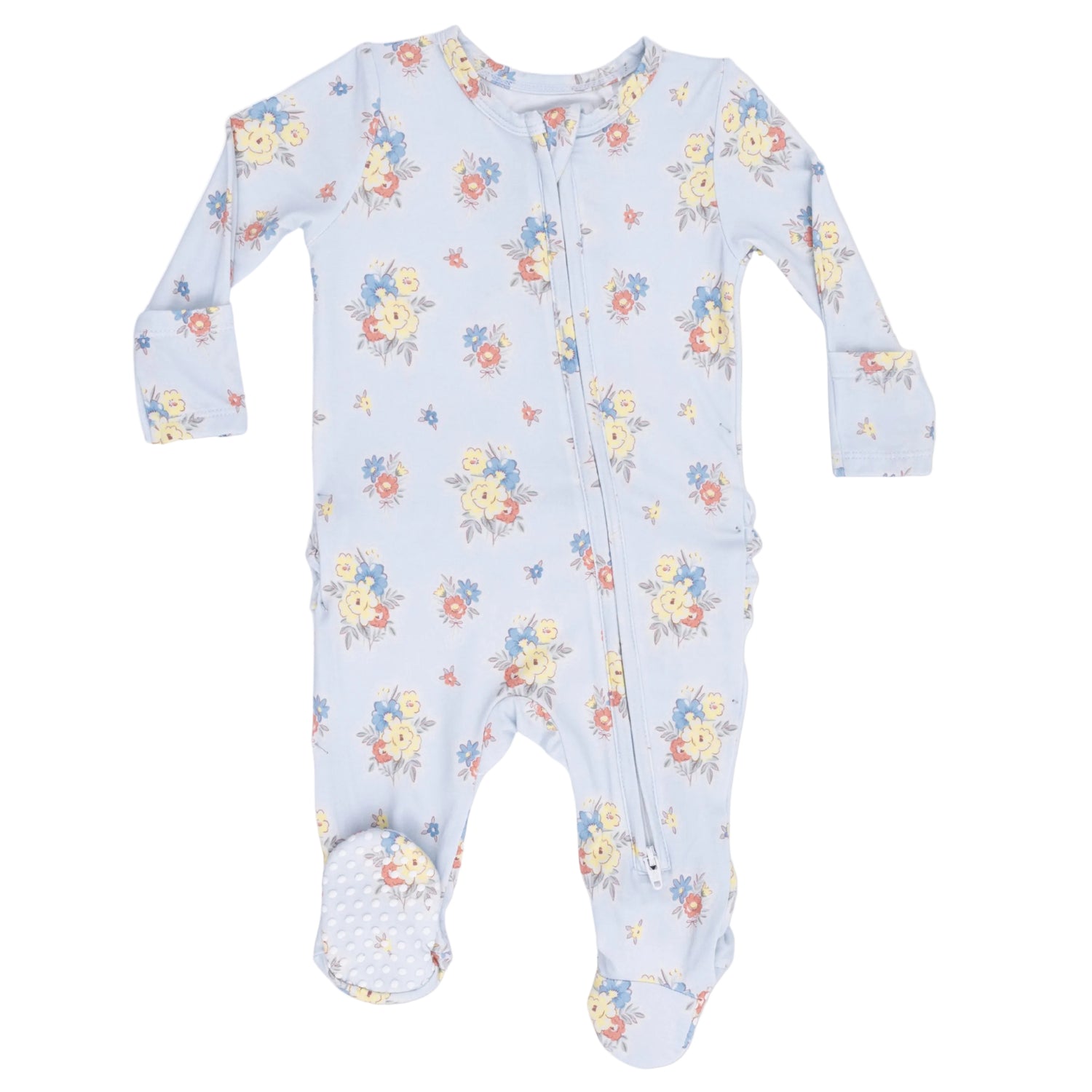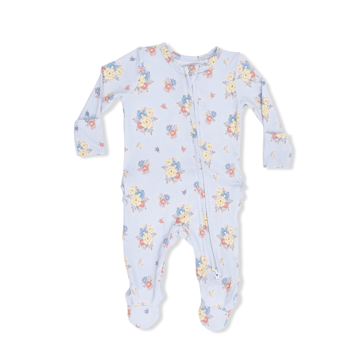 Country Stitch Floral - 2 Way Ruffle Back Zipper Footie