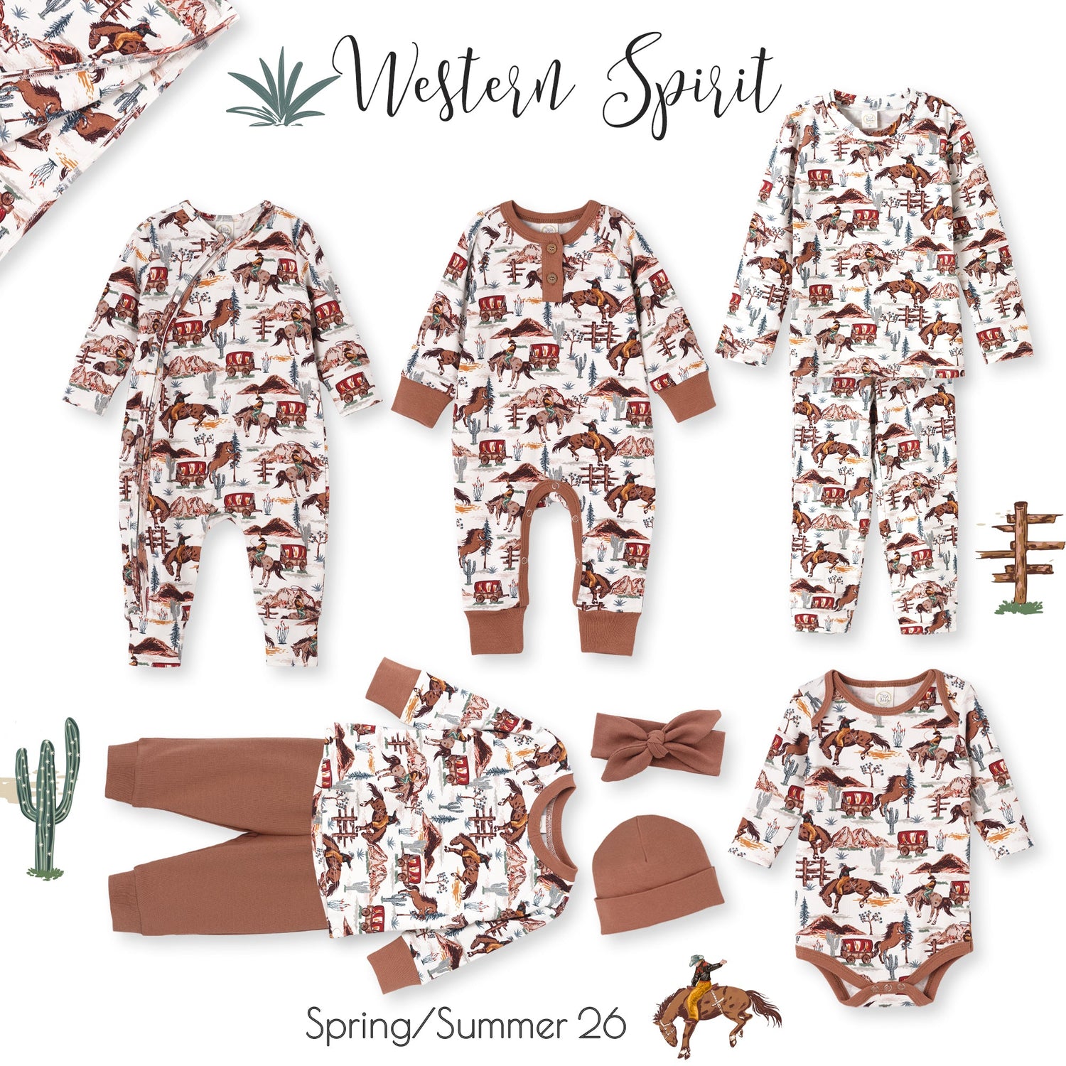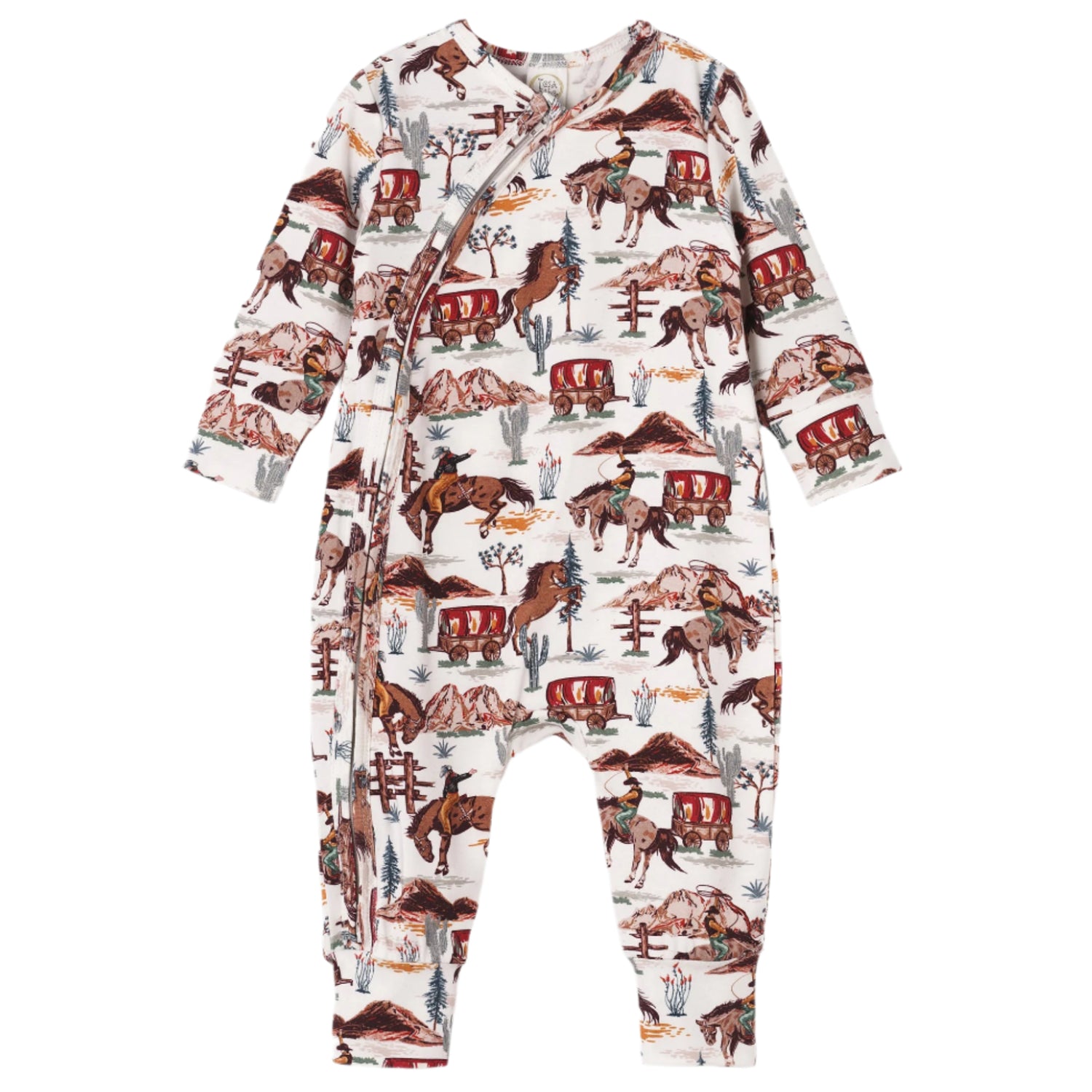 Cowboy Western Spirit Baby Boy Bamboo Zipper Romper