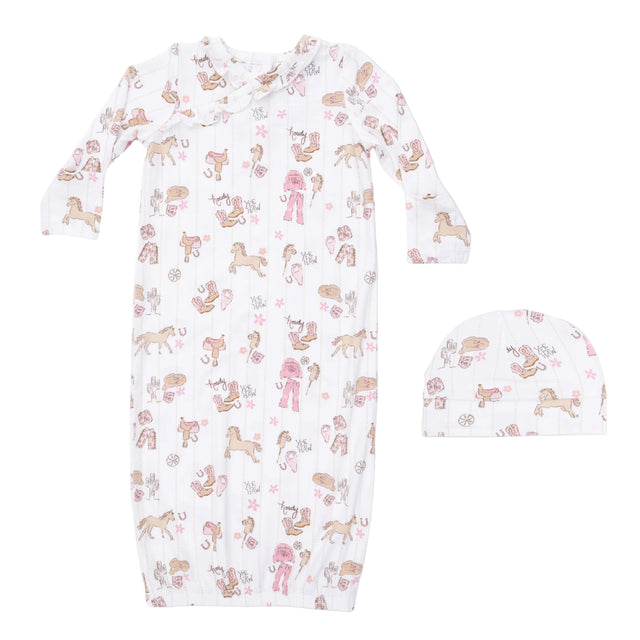 Cowgirl Nursery - Kimono Gown & Ruffle Knotted Hat