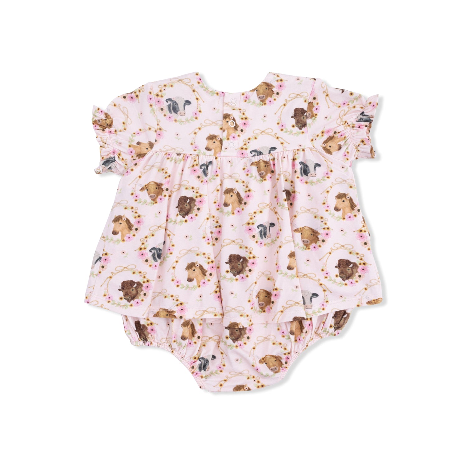 Farm Animals Floral Cameos Pink - Smocked Ruffle Bubble with Skirt